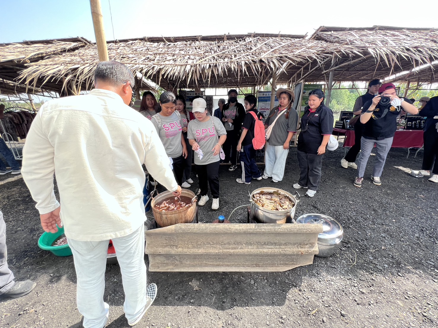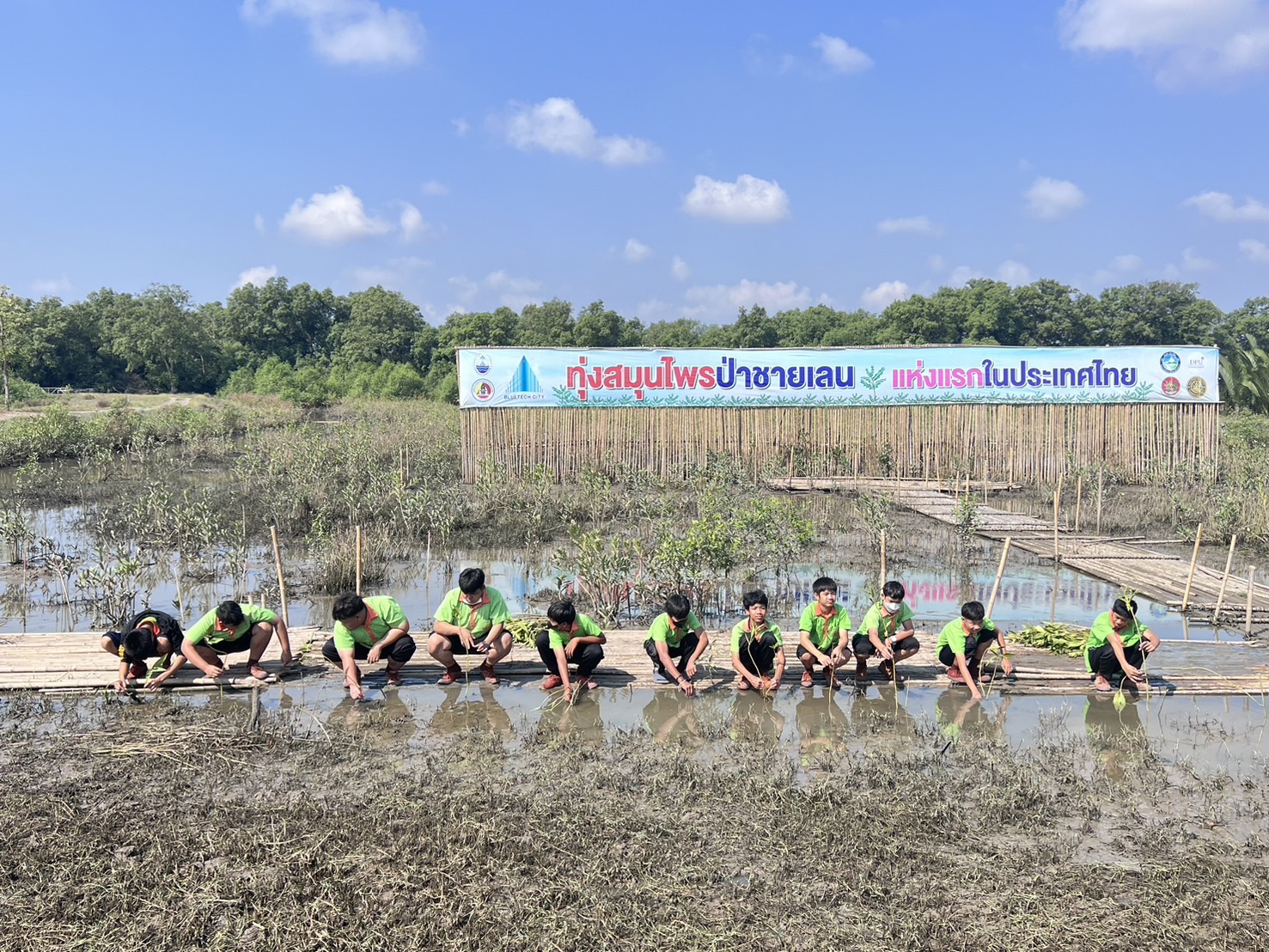 7 กุมภาพันธ์ 2567 นางสาวกุลพรภัสร์ วงศ์มาจารภิญญา ประธานผู้บริหารนิคมอุตสาหกรรมฉะเชิงเทรา บลูเทคซิตี้ ต้อนรับคณะนักศึกษาและคณาจารย์จากมหาวิทยาลัยศรีปทุม รวมทั้งนักเรียนและคุณครูจากโรงเรียนวัดเขาดิน มาศึกษาดูงาน ที่ศูนย์เรียนรู้ “ทุ่งสมุนไพรป่าชายเลน แห่งแรกในประเทศไทย” ภายใต้แนวคิด “จากภูมิปัญญาสมุนไพรป่าชายเลน สู่ Fashion Show Low Carbon” โดยภายในศูนย์เรียนรู้ มีกิจกรรมต่างๆให้ศึกษาดูงานมากมาย อาทิ กิจกรรมแปรรูปสมุนไพรเหงือกปลาหมอมาทำเป็นสบู่ กิจกรรมเพาะพันธุ์ลูกปูทะเล เชิญชวนเย็บใบจาก ทานอาหารจากป่าชายเลน และกิจกรรมทำผ้ามัดย้อม – มัดใจใบโพธิ์ทะเล ฯลฯ ณ ทุ่งสมุนไพรป่าชายเลน ต.เขาดิน อ.บางปะกง จ.ฉะเชิงเทรา