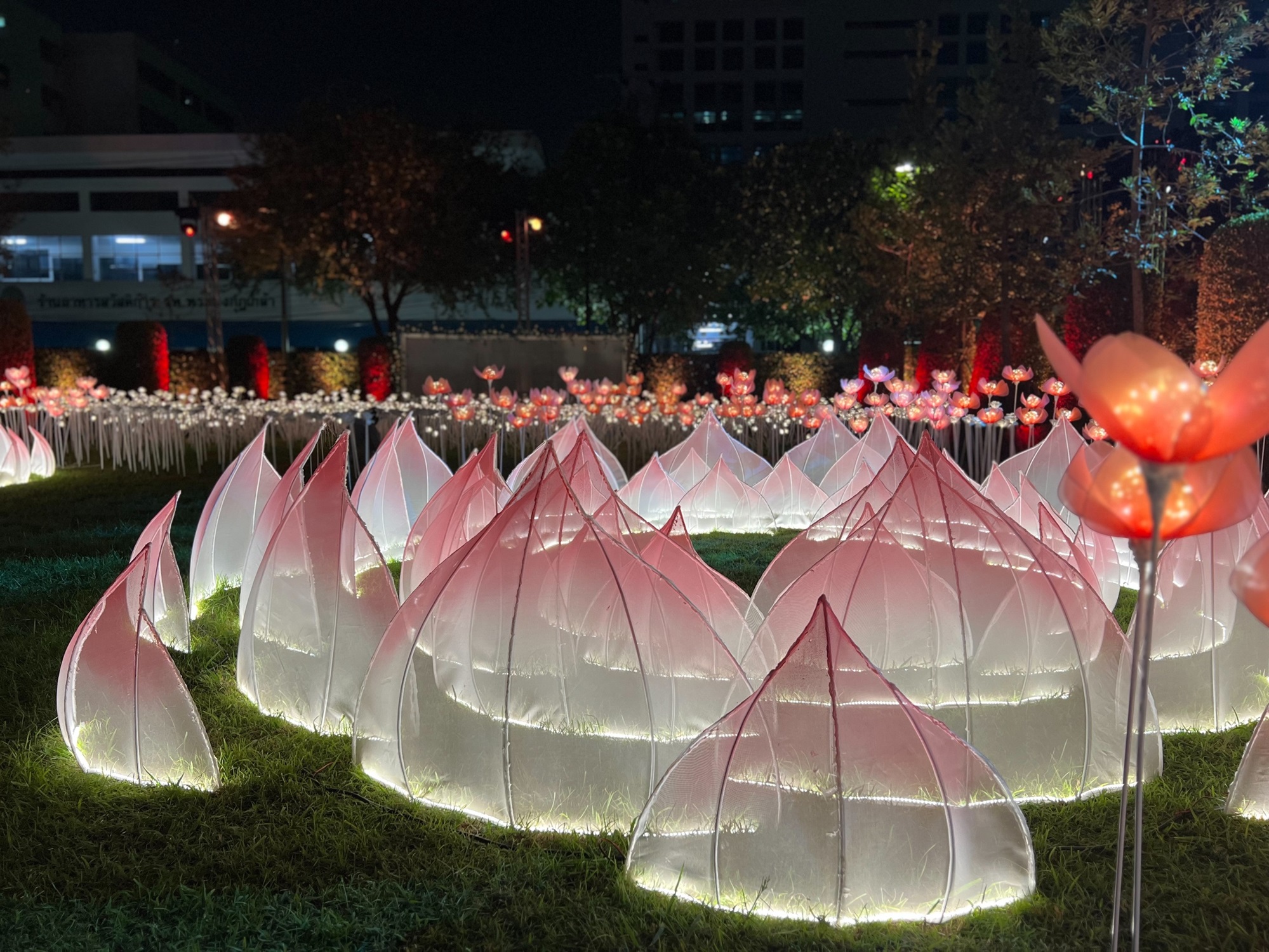 โซนที่ 6 LIGHTING INSTALLATION : เปิดประสบการณ์พร้อมดื่มด่ำไปกับความงดงามของดอกบัวนับพันดอกด้วยเทคนิคไฟย้อมสี ตามเส้นทางไปสักการะ “ท้าวหิรัญพนาสูร”