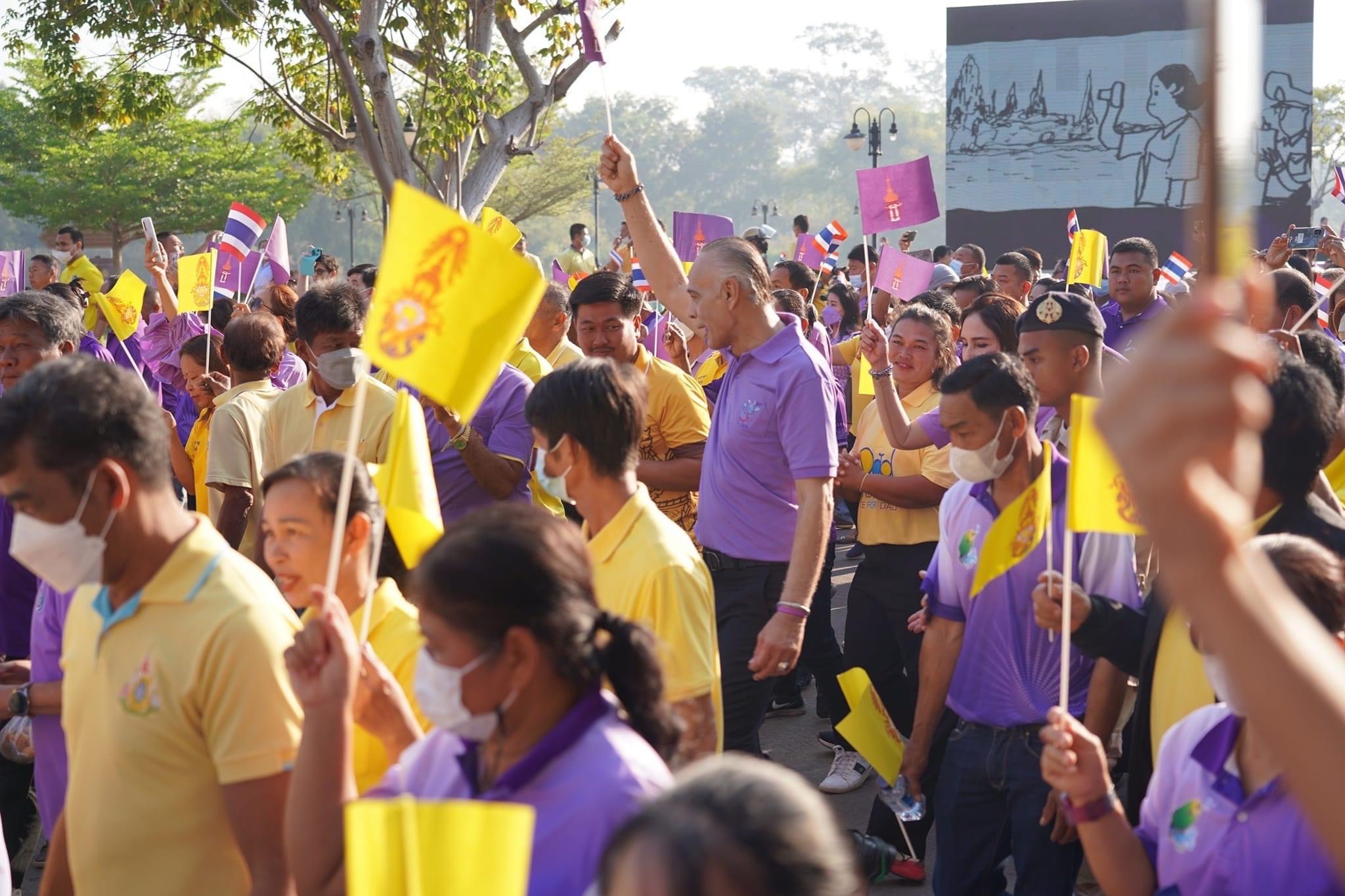 เมื่อเวลา 08.00 น. วันที่ 14 กุมภาพันธ์ 2567 ผู้สื่อข่าวรายงานจาก จ.อุทัยธานี ที่บริเวณลานสุพรรณิการ์ หน้าศาลากลางจังหวัดอุทัยธานี นายชาดา ไทยเศรษฐ์ รัฐมนตรีช่วยว่าการกระทรวงมหาดไทย พร้อมด้วย นายธีรพัฒน์ คัชมาตย์ ผู้ว่าราชการจังหวัดอุทัยธานี นางสาวมนัญญา ไทยเศรษฐ์ ประธานคณะที่ปรึกษารมช.มหาดไทย นายเจเศรษฐ์ ไทยเศรษฐ์ ส.ส.อุทัยธานี เขต 1 ตลอดจนส่วนราชการ ผู้นำท้องถิ่น ท้องที่ ประชาชน และนักเรียนนับหมื่นคน พร้อมใจกันสวมใส่เสื้อสีม่วง และสีเหลือง มาร่วมร้องเพลงชาติไทย พร้อมแสดงจุดยืนในการปกป้องและถวายกำลังใจ สมเด็จพระกนิษฐาธิราชเจ้า กรมสมเด็จพระเทพรัตนราชสุดาฯ สยามบรมราชกุมารี ก่อนพากันเดินเท้าจากจุดดังกล่าวไปร่วมกันร้องเพลงสรรเสริญพระบารมีที่บริเวณหน้าบ้าน 905