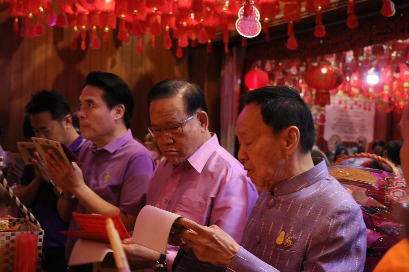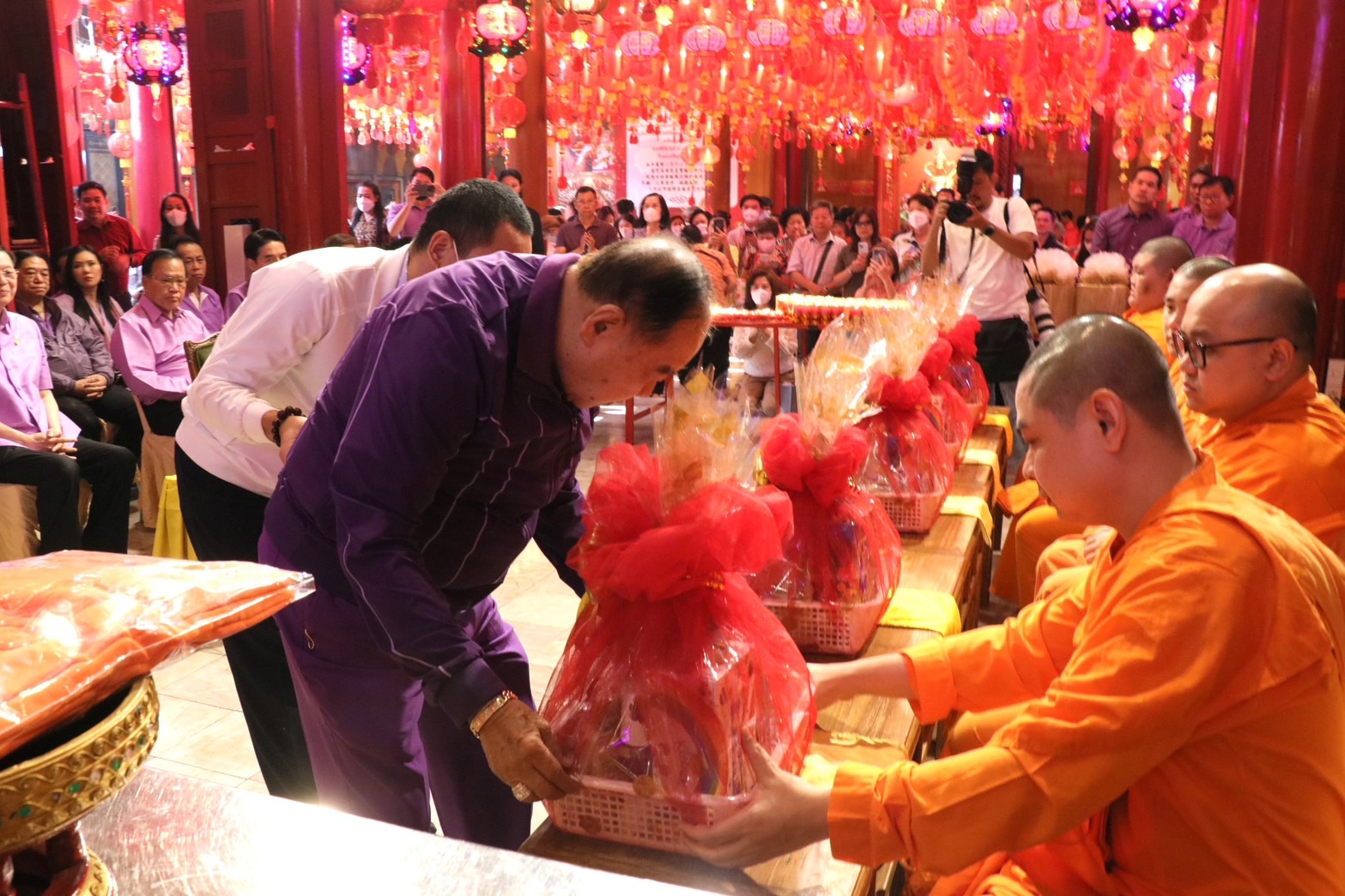ทั้งนี้ พล.อ.ประวิตร ได้ขอพรเทพเจ้าในจุดสำคัญตามประเพณี และเข้าพิธีถวายโคมประทีปแดง พร้อมจุดเทียนชัย ณ อุโบสถโดยมีพระครูมงคลรัตน์ (เสี่ยมุ่ย) ผู้ช่วยเจ้าอาวาสวัดเล่งเน่ยยี่ และพระสงฆ์จีน 5 รูป ร่วมสวดมนต์เพื่อความเป็นศิริมงคลของทุกคนในพรรคให้สามารถทำงานรับใช้ประชาชนได้อย่างสัมฤทธิ์ผล ราบรื่นและให้มีความเจริญรุ่งเรือง