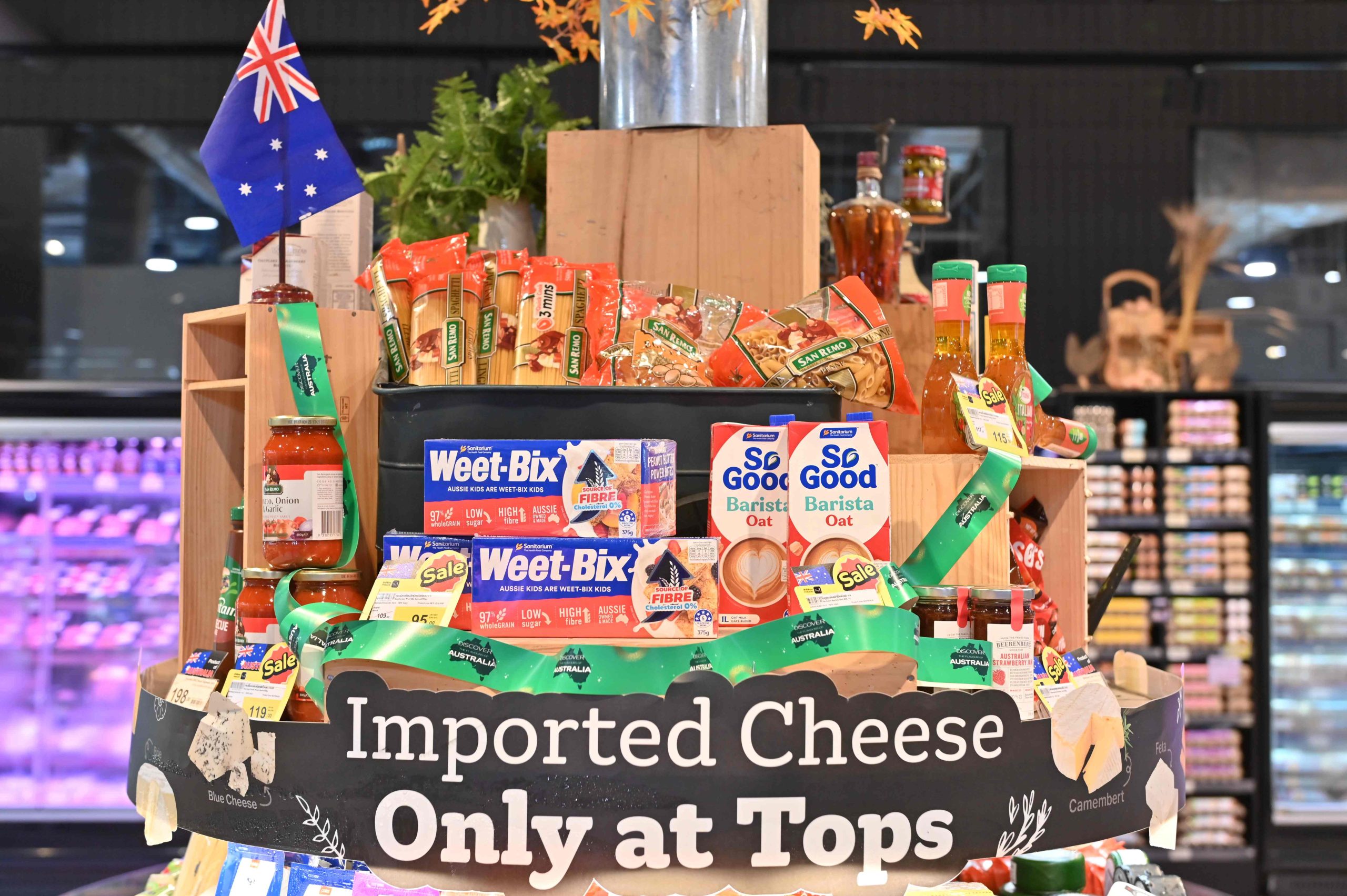 อาทิ องุ่นไร้เมล็ดเนคทารีน พลัม อะโวคาโด แซลมอนแทสมาเนียน หอยเป๋าฮื้อ เนื้อพิคานย่าออสเตรเลีย ขาแกะออสเตรเลีย เนื้อทาจิมาวากิวออสเตรเลีย หอยแมลงภู่ออสเตรเลีย รวมถึงสินค้าเอ็กซ์คลูซีฟจำหน่ายเฉพาะที่ท็อปส์จากโคลส์ (Coles) นอกจากนี้ ยังมีผลิตภัณฑ์อาหารเสริมตัวดังจากออสเตรเลียนำเข้าโดย Tops Vita ศูนย์รวมวิตามินและอาหารเสริมที่ครบครันที่สุด อาทิ SpringLeaf Collagen 5in1, Blackmores, Swisse Collagen & GrapeSeed ฯลฯ รวมกว่า 1,400 รายการ