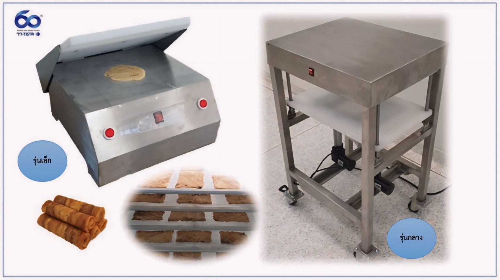 กระทรวงการอุดมศึกษา วิทยาศาสตร์ วิจัยและนวัตกรรม (อว.) สถาบันวิจัยวิทยาศาสตร์และเทคโนโลยีแห่งประเทศไทย (วว.) โดย ศูนย์เชี่ยวชาญนวัตกรรมอาหารสุขภาพ (ศนอ.) ประสบผลสำเร็จในการวิจัยและพัฒนา “เครื่องทับกล้วยแผ่นบาง” สำหรับผู้ประกอบการ SMEs โดยพัฒนาต่อยอดจาก “เครื่องทับกล้วยแบบกึ่งอัตโนมัติ รุ่นที่ 1”