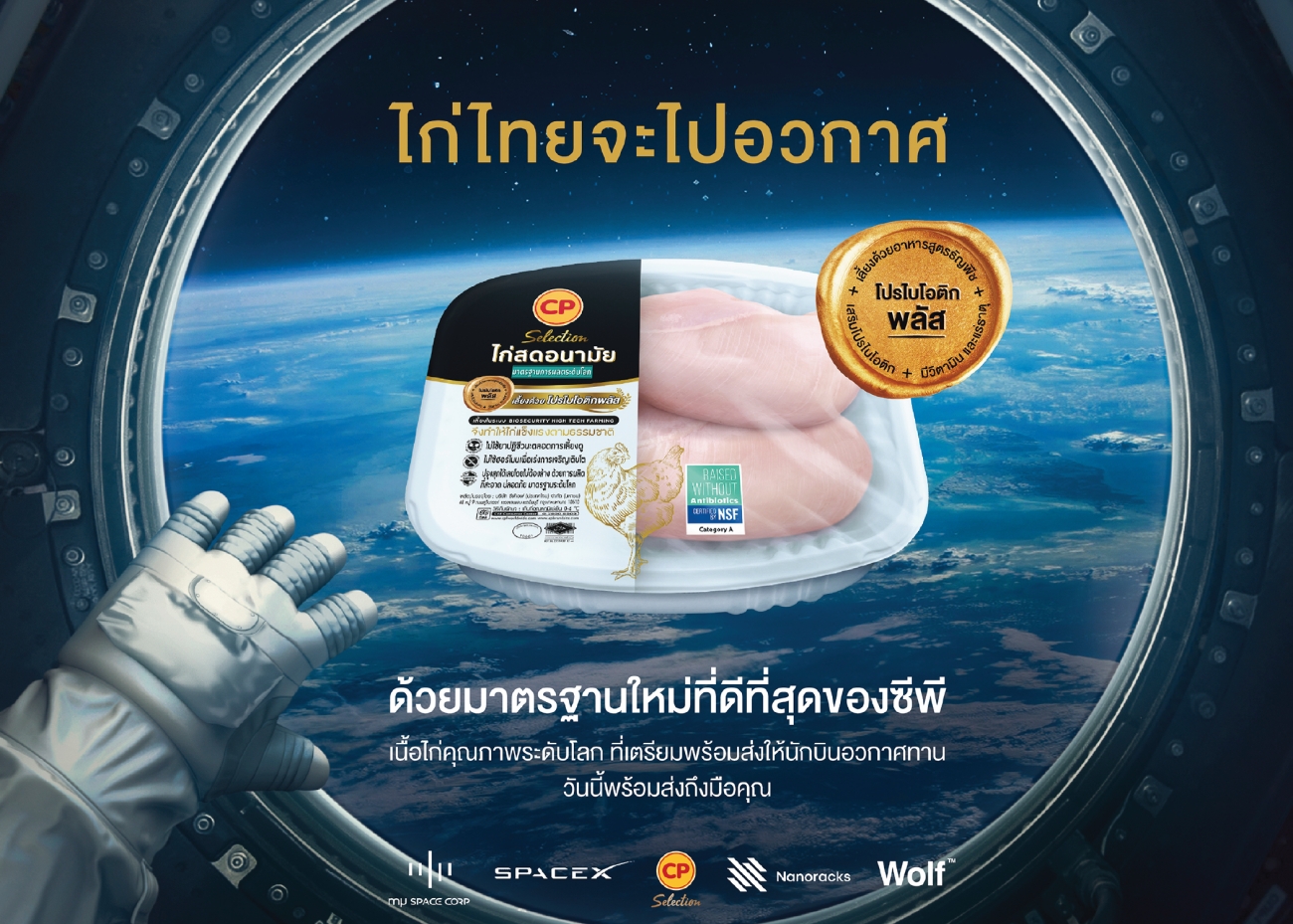 ปี 2566 โครงการ ‘ไก่ไทยจะไปอวกาศ’ สร้างกระแสทอล์กออฟเดอะทาวน์ระดับโลก เพียงเปิดตัวสร้างปรากฏการณ์จำนวนของการโพสต์ถึง 1,300 ล้านครั้ง ภายในเวลา 1 เดือน ทำให้แฮชแท็ก #ไก่ไทยจะไปอวกาศกับซีพี #CPMissiontoSpace ทะยานขึ้นอันดับ 1 เทรนด์ X Thailand อันดับ 3 เทรนด์ X Worldwide ขณะที่หนังโฆษณา ‘ครั้งแรกของโลก! ไก่ไทยจะไปอวกาศ กับ ซีพี’ มียอดผู้ชมมากกว่า 100 ล้านวิวในแพลตฟอร์มโซเชียลมีเดีย สร้างความเชื่อมั่นแก่คู่ค้าเพิ่มขึ้นจากการตอบรับสินค้ามากกว่า 1,000 ร้านค้า ภายใน 1 เดือน