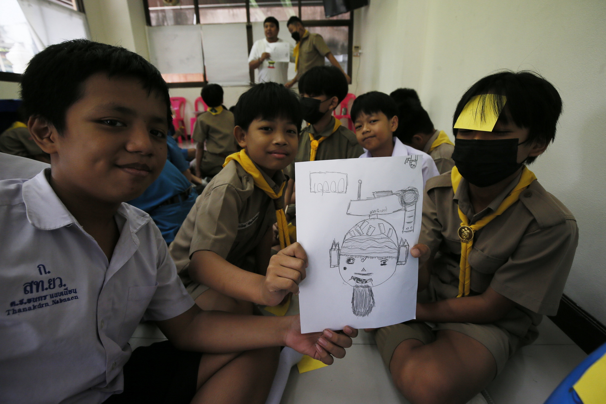 ปิดท้ายที่ ด.ช.ปัณณทัต เหมือนสวรรค์ หรือ เน ชั้น ป. 5 โรงเรียนวัดยานนาวา เล่าว่า “ได้เรียนรู้ป้ายทางด่วน ป้ายห้ามจอด ได้รู้ว่าหมวกกันน็อก มีความแข็งแรงต่างกัน หมวกแบบไฟเบอร์ป้องกันการกระแทกได้ดีกว่าแบบพลาสติก จึงมีความปลอดภัยมากกว่า อีกฐานที่ได้เล่นคือฐานระดมสมอง ได้วาดรูปสิ่งที่คิดว่าจะเป็นไปได้ในอนาคต คือหมวกกันน็อก ในอนาคตจะมีเครื่องฉายภาพไปข้างหน้า สามารถดูข่าวหรือเรื่องราวต่างๆ ได้ เพื่อเราจะไม่ต้องก้มดู ตอนนี้เห็นความสำคัญของหมวกกันน็อกมากขึ้น ต่อไปจะใส่ทุกครั้งที่ซ้อนท้ายใช้รถ และจะไปบอกทุกคนใส่หมวกกันน็อก เพื่อป้องกันสมองจากแรงกระแทกหากเกิดอุบัติเหตุ”
