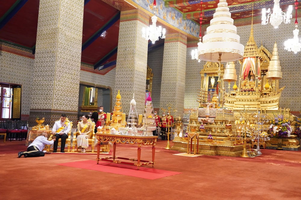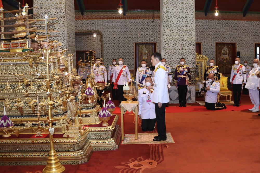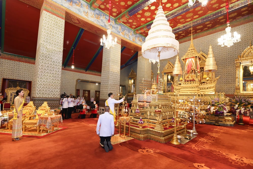 พระบาทสมเด็จพระเจ้าอยู่หัว เสด็จพระราชดำเนินไปทรงพระสุหร่ายเครื่องราชกกุธภัณฑ์ และพระราชลัญจกรพระครุฑพ่าห์ทองคำประจำรัชกาลที่พระแท่นพระนพปฎลมหาเศวตฉัตร แล้วทรงกราบพระพุทธปฏิมาชัยวัฒน์ รัชกาลที่ 1 ถึงรัชกาลที่ 7 และรัชกาลที่ 9 ที่หน้าพระที่นั่งบุษบกมาลา ทรงรับการถวายความเคารพของผู้มาเฝ้าทูลละอองธุลีพระบาท แล้วเสด็จออกจากพระที่นั่งอมรินทรวินิจฉัย ประทับรถยนต์พระที่นั่ง เสด็จพระราชดำเนินกลับ