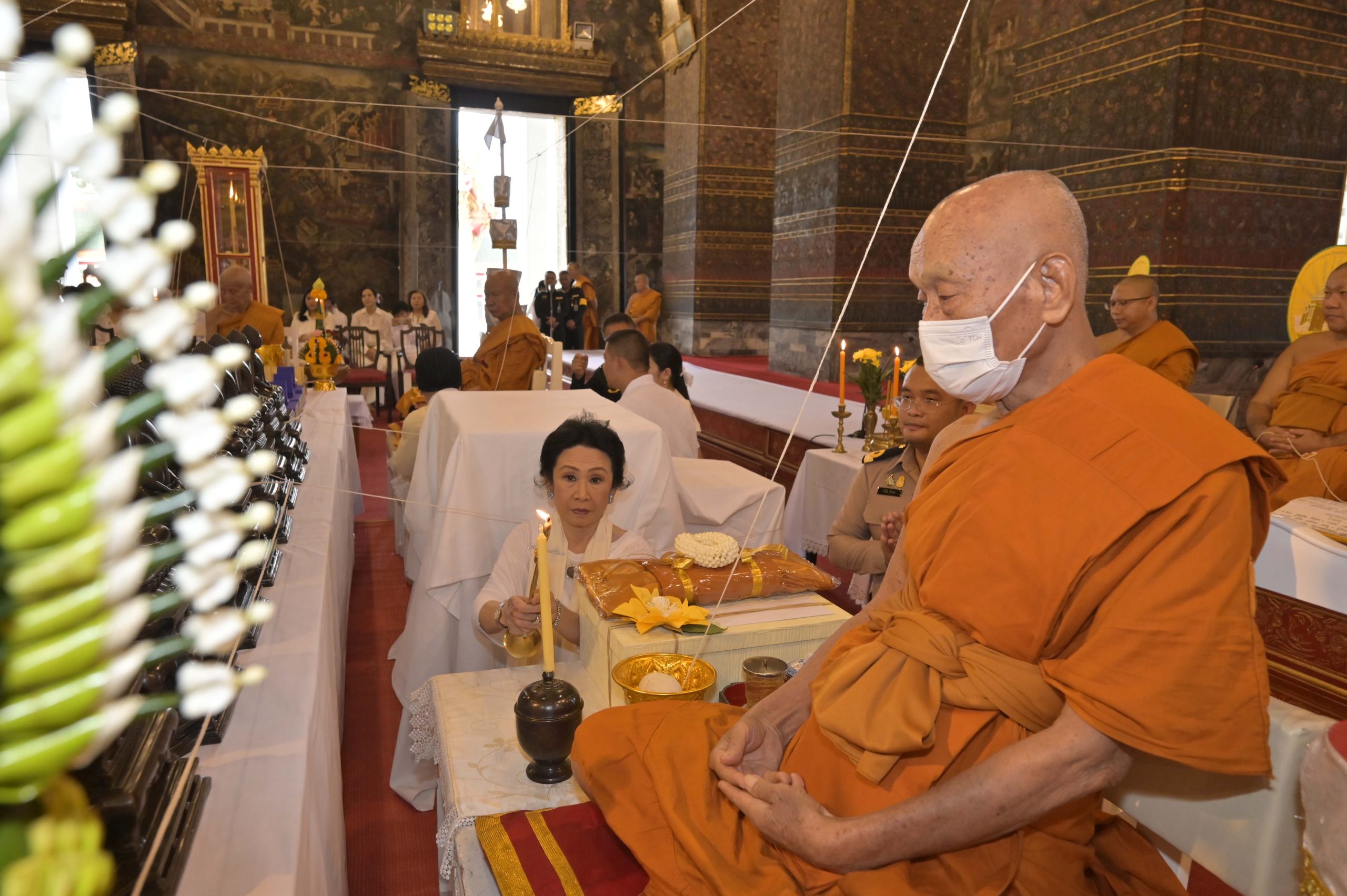 เวลา 17.09 น. สมเด็จพระมหาธีราจารย์เป็นประธานฝ่ายสงฆ์ ในพิธีจุดเทียนชัย