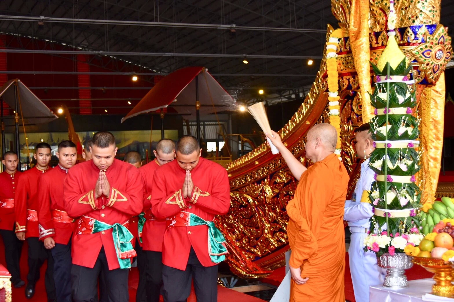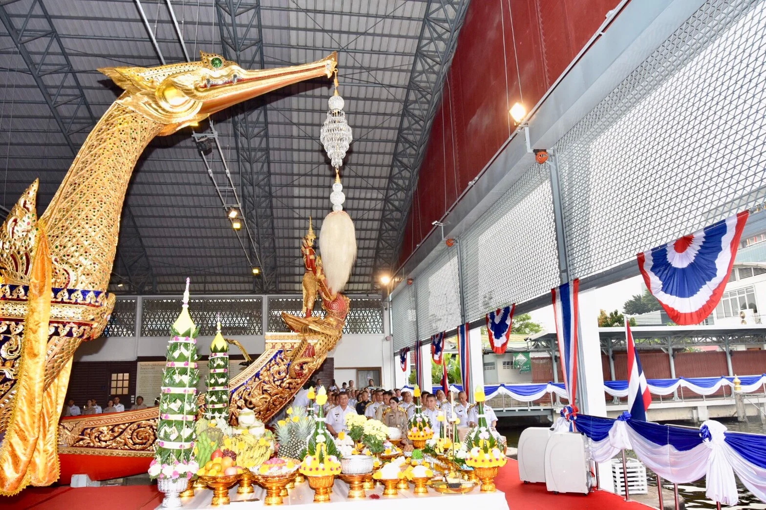 โดยมีการประกอบพิธีบวงสรวงพระภูมิเจ้าที่ คล้องพวงมาลัย บวงสรวงแม่ย่านางเรือพระที่นั่ง และการอ่านโองการบวงสรวงแม่ย่านางเรือพระที่นั่ง การเจิมเรือ ปิดทอง ผูกผ้าสามสี คล้องพวงมาลัย โปรยดอกไม้ บริเวณโต๊ะบวงสรวง และเรือพระที่นั่งสุพรรณหงส์ ก่อนที่จะมีการรำถวายมือ จากกรมศิลปากร