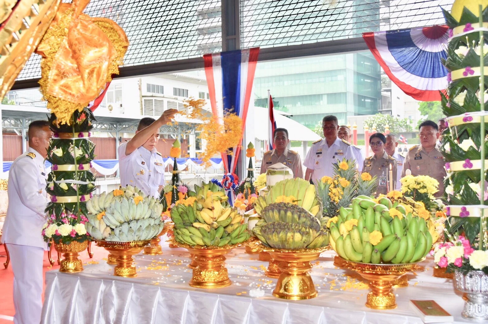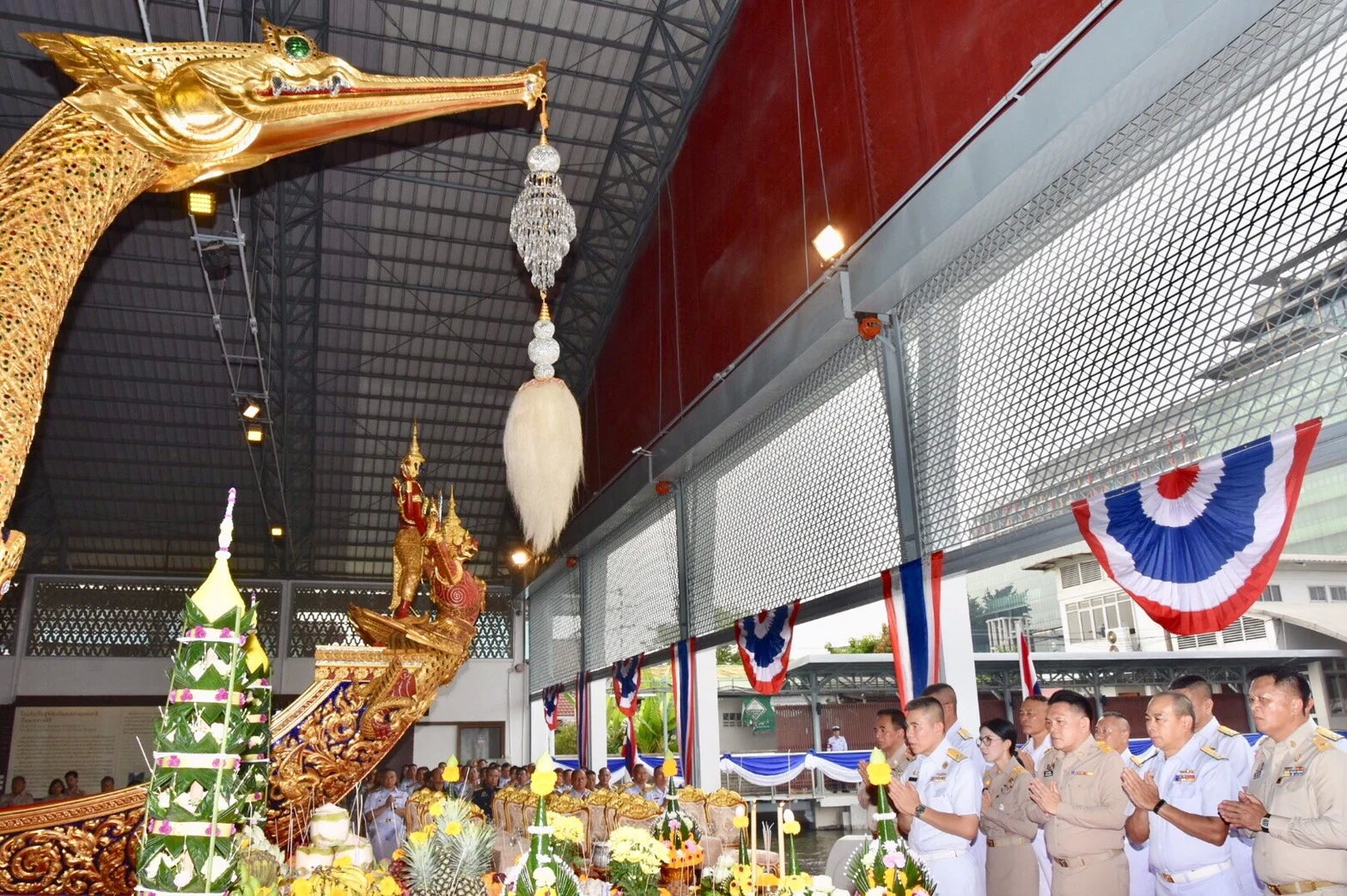 จากนั้น ผู้บัญชาการทหารเรือและคณะ ได้เดินทางไปร่วมพิธีบวงสรวงเรือพระที่นั่งและเรือรูปสัตว์ จำนวน 6 ลำ ที่ โรงเรือพระราชพิธี ท่าวาสุกรี ได้แก่ เรือเอกไชยหลาวทอง เรือกระบี่ราญรอนราพณ์ เรือครุฑ