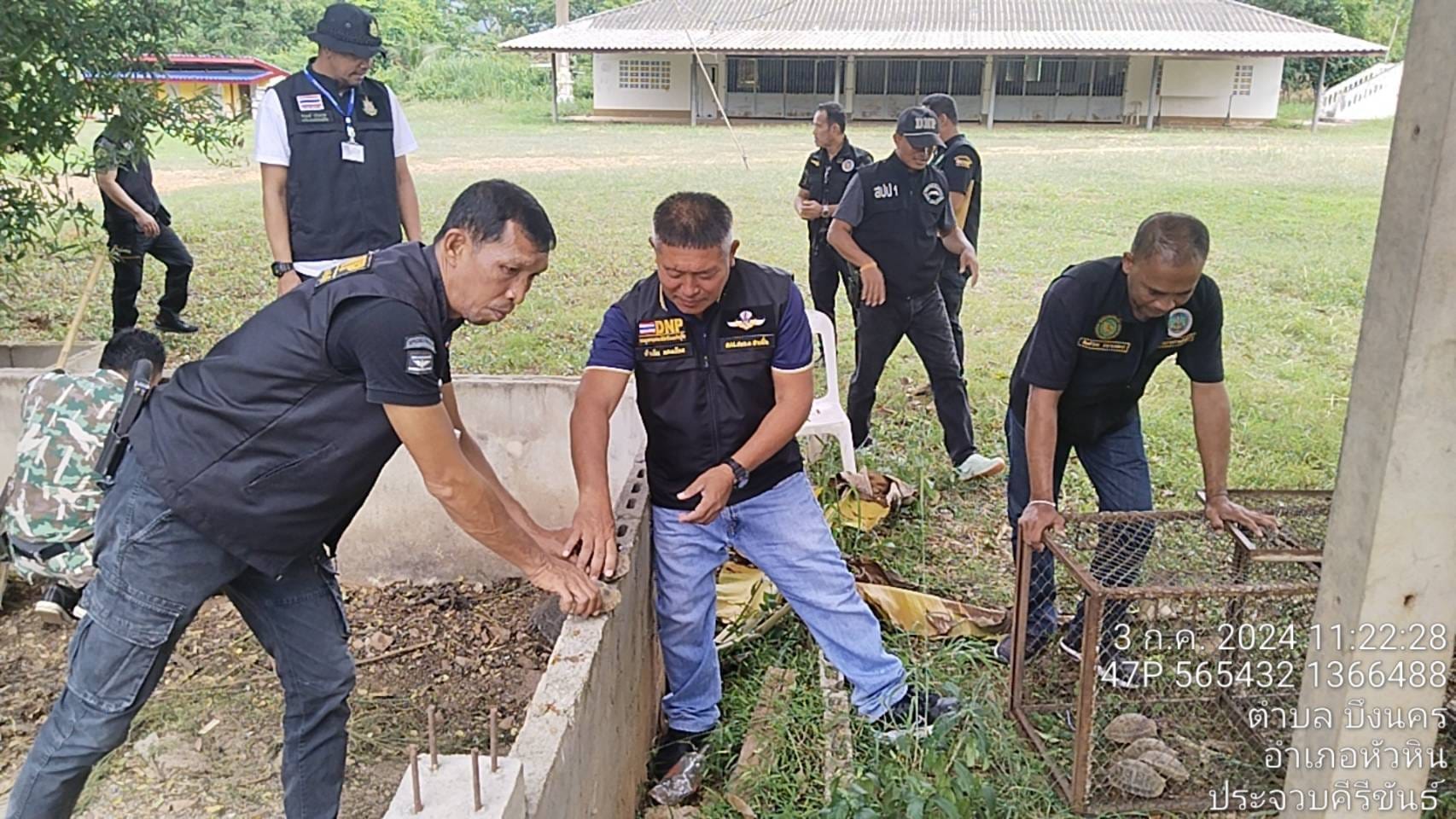 ได้ร่วมกันจับกุมผู้กระทำความผิดจำนวน 1 ราย พร้อมตรวจยึดพร้อมของกลาง ได้แก่ ซากหัวเลียงผาจำนวน 3 ซาก เต่าเหลือง จำนวน 11 ตัว เต่าหวายจำนวน 1 ตัว เต่าหก จำนวน 1 ตัว ลิงกัง จำนวน 1 ตัว บริเวณสำนักสงฆ์แพรกตะคร้อ ตำบลบึงนคร อำเภอหัวหิน จังหวัดประจวบคีรีขันธ์