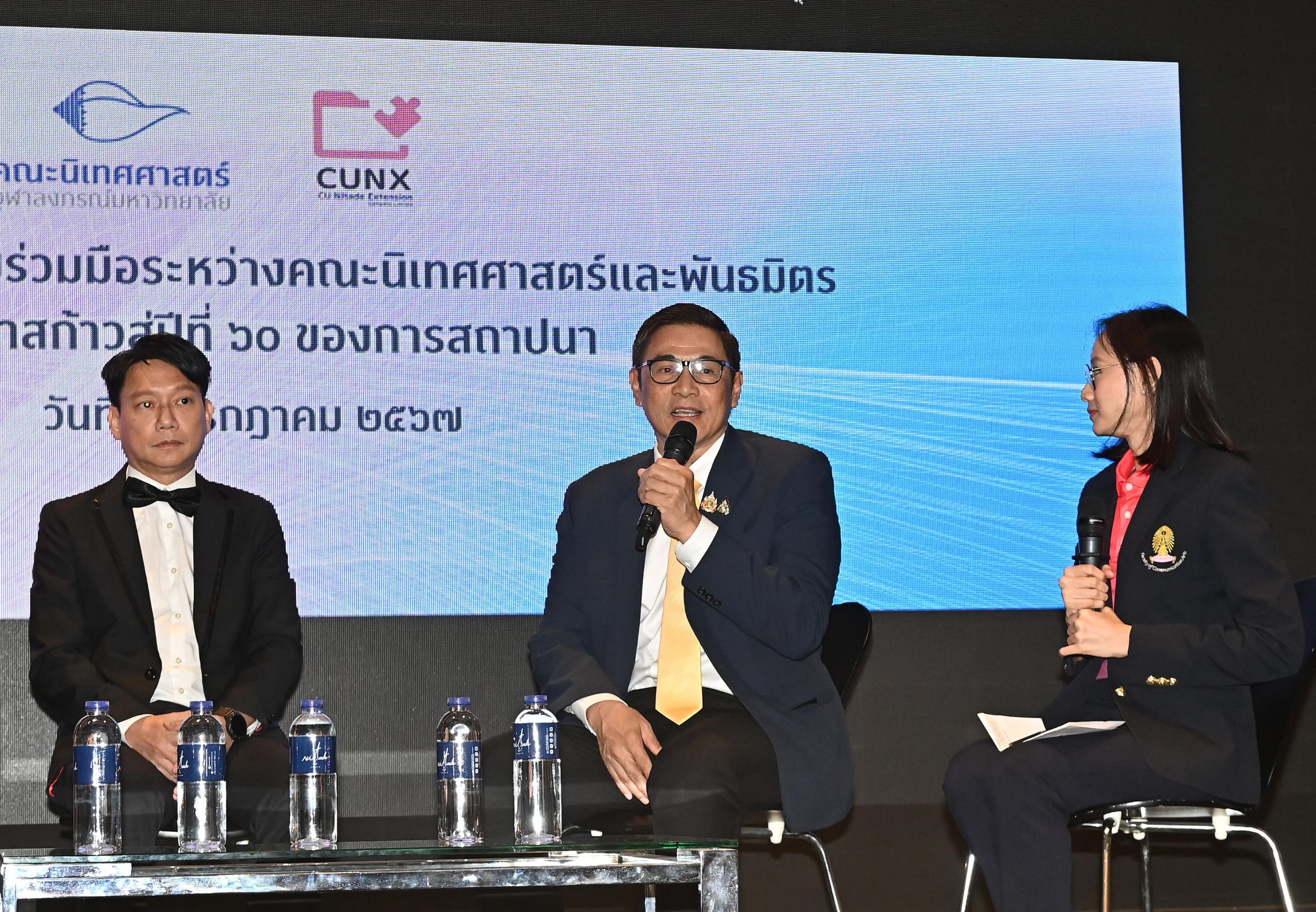 นายตรีเทพ ไทยคุรุพันธ์ กรรมการผู้จัดการ บริษัทซียู นิเทด เอ็กซ์เทนชั่น จำกัด ซึ่งเป็นบริษัทหนึ่งในกลุ่มบริษัทเอ็นเตอร์ไพรส์ของจุฬาลงกรณ์มหาวิทยาลัย กล่าวถึงการสนับสนุนของบริษัทในการดำเนินงานของคณะนิเทศศาสตร์ให้สามารถนำงานวิจัยด้านนิเทศศาสตร์ต่าง ๆ มาพัฒนาต่อยอดสร้างโอกาสการเติบโตทางธุรกิจและเป็นส่วนสำคัญของการพัฒนานิเทศนวัตกรรมในระดับประเทศ ซึ่งเป็นกระบวนการที่สำคัญในการสร้างการเติบโตด้านวิจัยและนวัตกรรมให้รุดหน้าทัดเทียมนานาชาติ โดยร่วมมือกับคณาจารย์ของคณะเพื่อร่วมกันพัฒนาหลักสูตรการศึกษาที่สนับสนุนการเรียนรู้ตลอดชีวิต (Lifelong Learning) มุ่งเปิดโอกาสให้ผู้ที่สนใจการศึกษาด้านนิเทศศาสตร์ในสาขาวิชาต่าง ๆ อาทิ การสร้างภาพยนตร์ การประชาสัมพันธ์ การผลิตสื่อดิจิทัล สามารถสมัครเข้ามาศึกษาในหลักสูตรระยะสั้นที่มุ่งเน้นการพัฒนาวิชาชีพที่สอนโดยนักวิชาชีพด้านต่าง ๆ ที่มีความชำนาญ นำไปสู่การฝึกปฏิบัติจริงควบคู่การเรียนภาคทฤษฎีที่สำคัญอันเป็นพื้นฐานหลักของการศึกษา และมีหลักสูตรที่หลากหลายพร้อมการฝึกอบรมในหลายรูปแบบที่ผู้สนใจสามารถเลือกศึกษาได้ตามอัธยาศัย