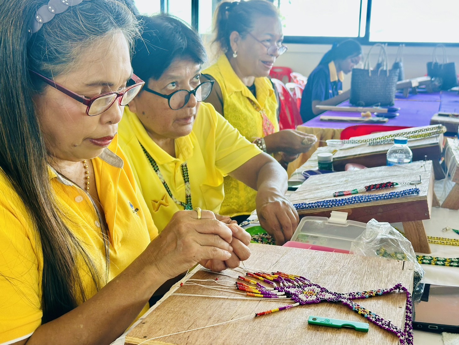 “กลุ่มแปรรูปผลิตภัณฑ์กระจูดมีสมาชิกประมาณ 40 คน เป็นหนึ่งในกลุ่มอาชีพที่ศูนย์ศิลปาชีพบ้านป่าหัวเขียว โครงการตามพระราชดำริของสมเด็จพระนางเจ้าสิริกิติ์ พระบรมราชินีนาถ พระบรมราชชนนีพันปีหลวง ร่วมกับส่วนราชการต่าง ๆ ส่งเสริมให้ประชาชนมีอาชีพเสริมจากการทำนา