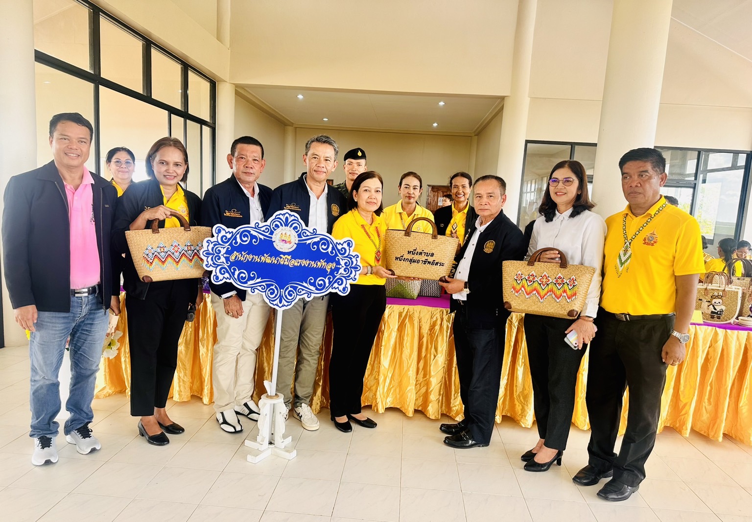 โฆษกกระทรวงแรงงานกล่าวว่า รัฐมนตรีว่าการกระทรวงแรงงานเล็งเห็นว่า ต.ทะเลน้อย เป็นตำบลที่มีต้นทุนทางทรัพยากรธรรมชาติค่อนข้างสูง มีฐานอาชีพกลุ่มจักสานกระจูดที่เข้มแข็ง แต่ผลิตภัณฑ์กระจูดไม่ค่อยมีราคา ขายได้ในราคาถูกประมาณใบละ 100 บาท เมื่อหักต้นทุนแล้ว ได้กำไรใบละไม่ถึง 10 บาท