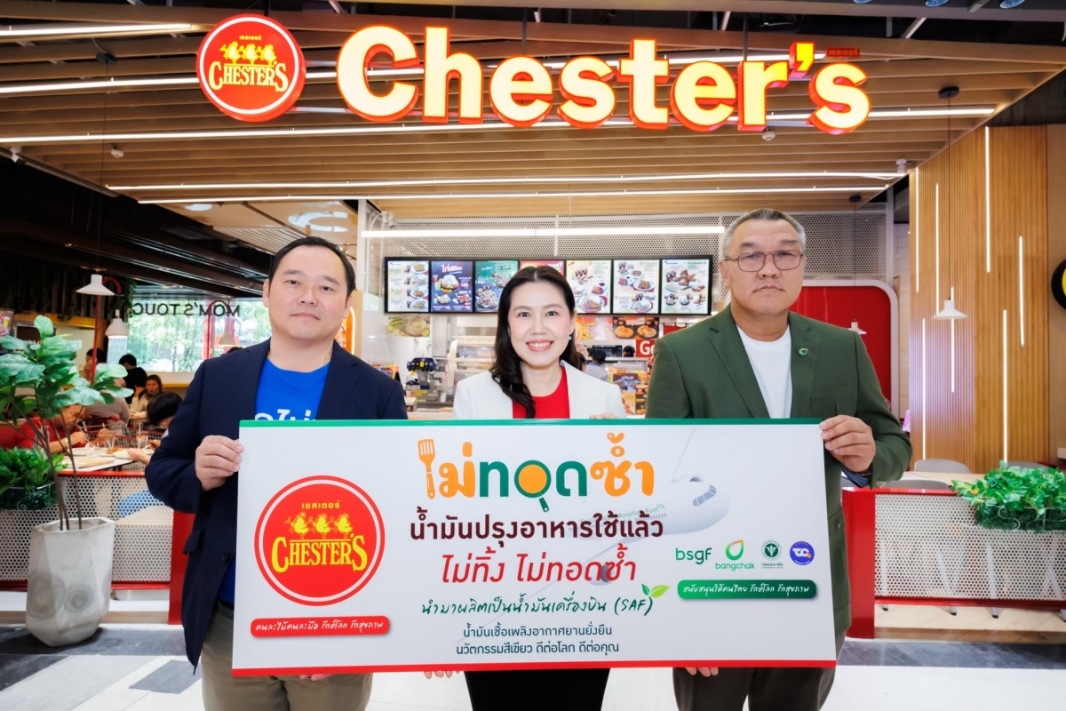ด้าน โครงการ ‘ทอดไม่ทิ้ง’ เชสเตอร์ร่วมกับร้านอาหารในเครือฯ บริหารจัดการน้ำมันพืชที่ใช้แล้ว เป็นมิตรต่อชุมชนและสิ่งแวดล้อม โดยบริษัทฯ จะสนับสนุนอุปกรณ์ในการจัดเก็บน้ำมันปรุงอาหารที่ใช้แล้ว ส่งมอบแก่ตัวแทนของ BSGF เพื่อเป็นวัตถุดิบผลิตน้ำมันเชื้อเพลิงอากาศยานยั่งยืน สามารถใช้กับเครื่องบินได้โดยไม่ส่งผลกับเครื่องยนต์ ซึ่งทุกร้านที่เข้าร่วมโครงการฯ จะได้ใบรับรองการสนับสนุนการใช้ทรัพยากรอย่างรู้ค่า มีการหมุนเวียนกลับมาใช้ประโยชน์อย่างสูงสุดตามโมเดลเศรษฐกิจหมุนเวียน – เศรษฐกิจชีวภาพ – เศรษฐกิจสีเขียว (BCG Economy) สร้างสังคมคาร์บอนต่ำ พร้อมทั้งช่วยผู้ประกอบการเพิ่มรายได้จากการจำหน่ายน้ำมันที่ใช้แล้วอีกด้วย