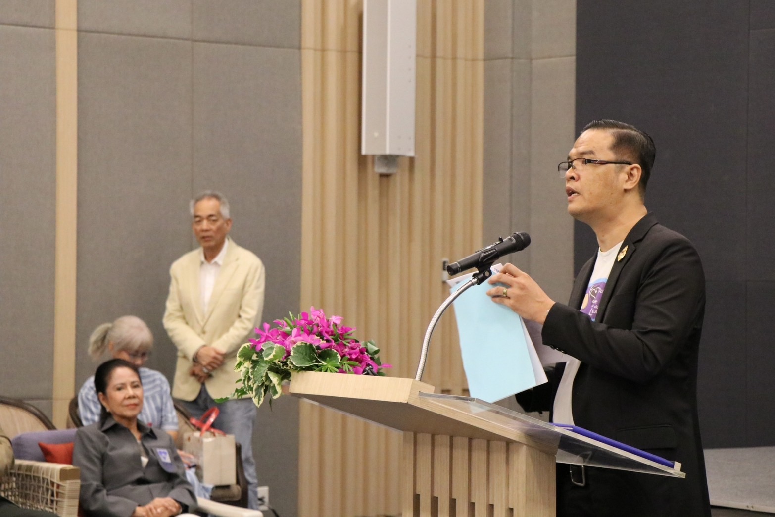 โดยมี นายธีระพงศ์ ปังศรีวงศ์ นายกสมาคมป้องกันการทารุณสัตว์แห่งประเทศไทย รศ.นุชทิพย์ บรรงจงศิลป์ อุปนายก TSPCA อดีตคณะกรรมาธิการวิสามัญร่างพระราชบัญญัติป้องกันการทารุณกรรมและการจัดสวัสดิภาพสัตว์ พ.ศ.2557 กล่าวต้อนรับผู้ร่วมสัมมนา มีนายนิกร จำนง ประธานคณะที่ปรึกษารัฐมนตรีว่าการกระทรวงพัฒนาสังคมและความมั่นคงของมนุษย์ และอดีตประธานคณะกรรมาธิการวิสามัญร่างพระราชบัญญัติป้องกันการทารุณกรรมและการจัดสวัสดิภาพสัตว์ พ.ศ….. นายวรฉัตร วิรัชลาภ ปศุสัตว์ เขต 2 ผู้แทนกระทรวงเกษตรและสหกรณ์และอธิบดีกรมปศุสัตว์ ร่วมเปิดงาน เป็นต้น