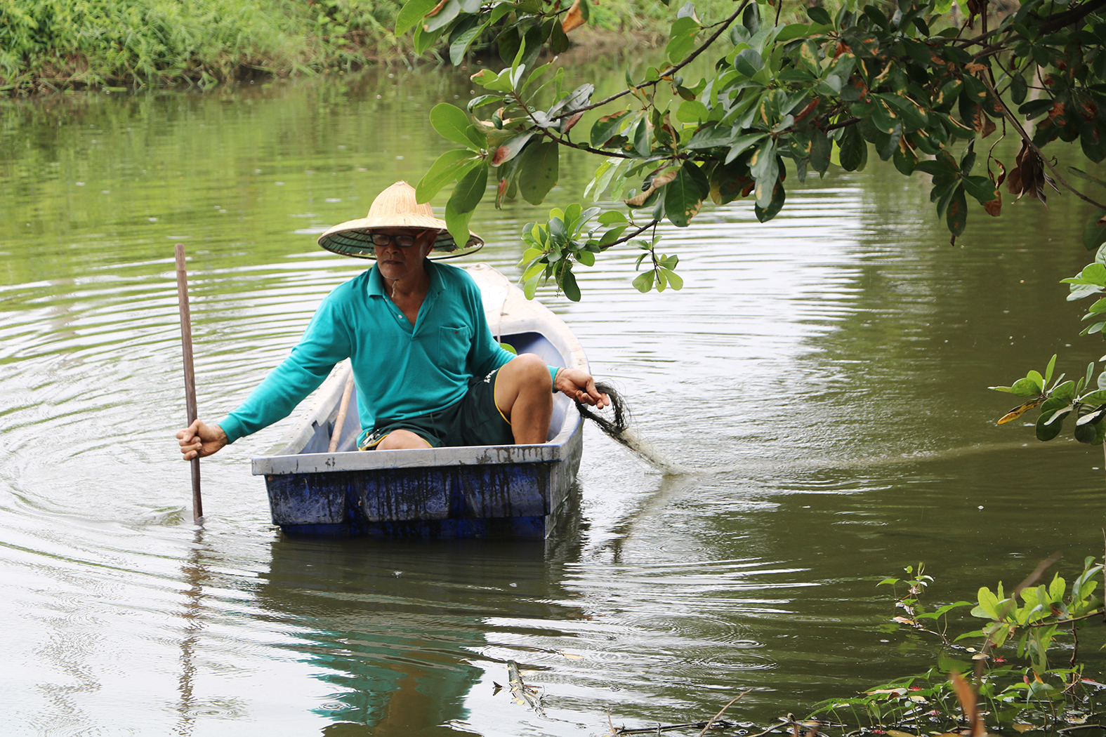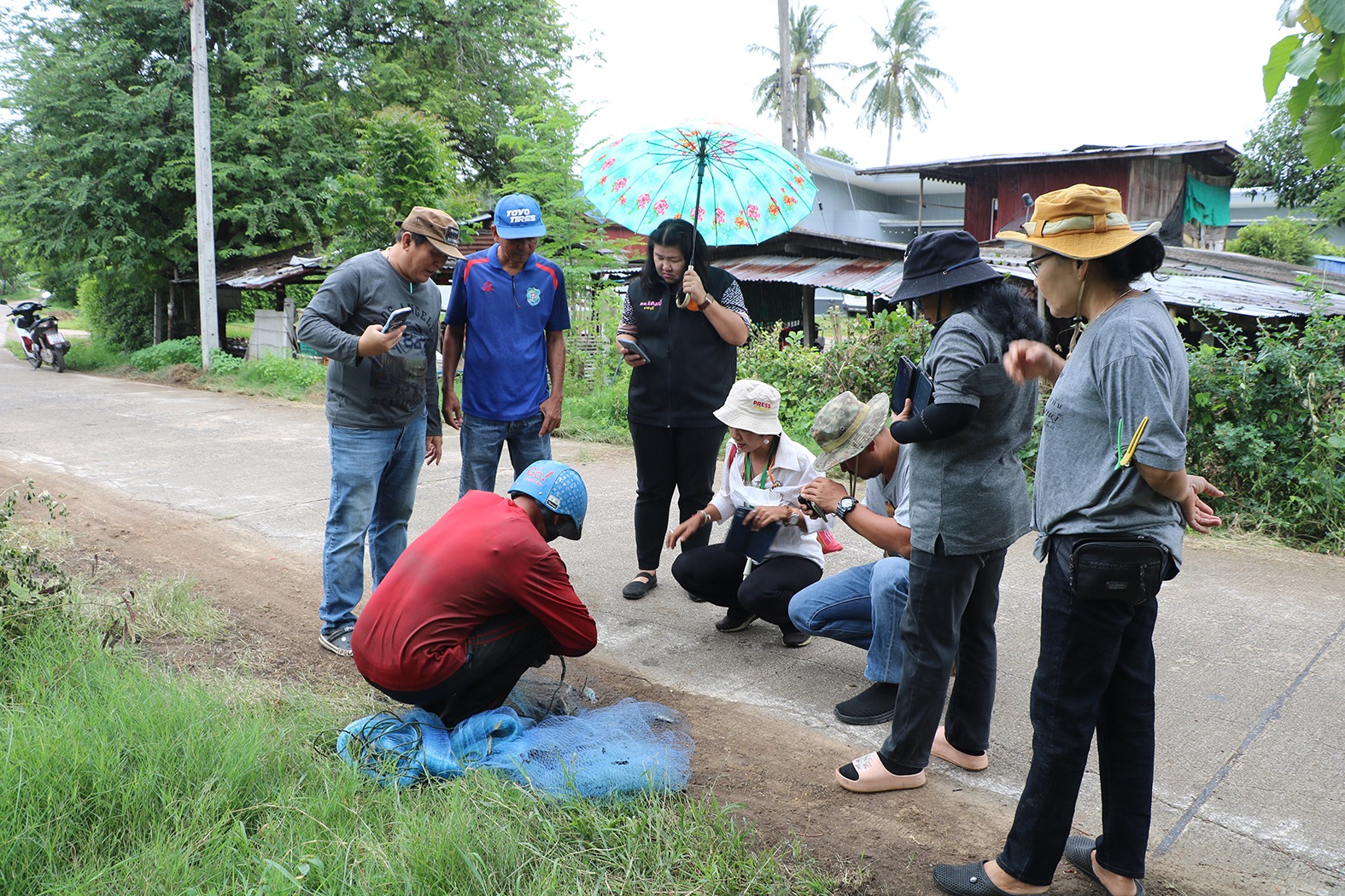 จากการลงสำรวจพื้นที่ลำคลองพบชาวบ้านกำลังพายเรือใช้ตะข่ายวางบริเวณลำคลอง แล้วค่อย ๆ ลากขึ้นฝั่งพบมีลูกปลานิลติดขึ้นมาด้วย ส่วนอีกจุดชาวบ้านเหวี่ยงแหเพียง 1 ครั้ง จากนั้นค่อย ๆ ลากแหขึ้นมาริมฝั่ง พบว่ามีปลาหมอคางดำติดขึ้นมาจำนวน 7 ตัว มีทั้งตัวเล็ก ตัวใหญ่ รวมทั้งมีปลานิลอีก 8 ตัวติดรวมขึ้นมาด้วย