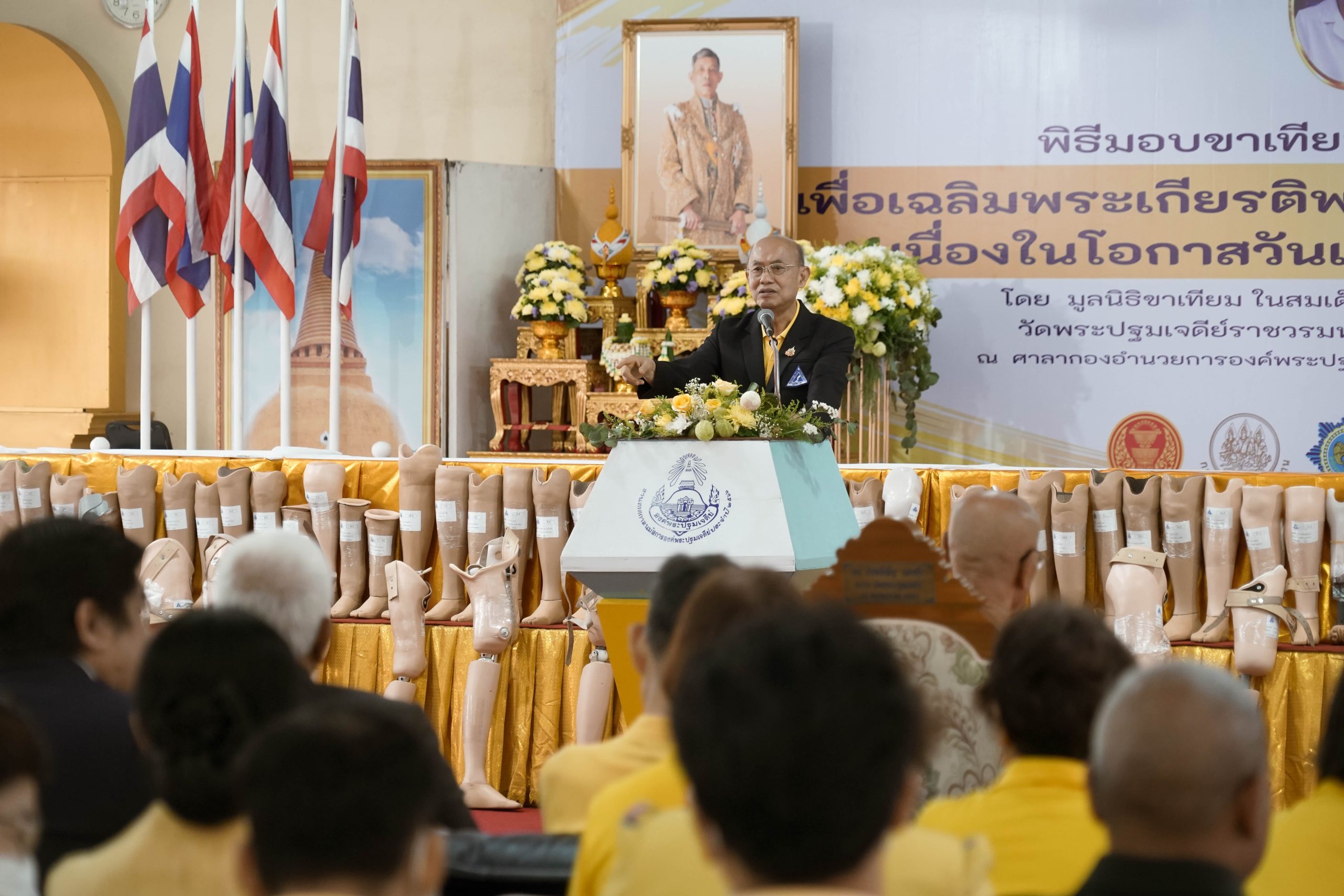 โดยมี ศาสตราจารย์เกียรติคุณ นายแพทย์เกษม วัฒนชัย องคมนตรี และประธานกรรมการมูลนิธิขาเทียม ในสมเด็จพระศรีนครินทราบรมราชชนนี เป็นผู้รับมอบ และศาสตราจารย์คลินิก นายแพทย์นิเวศน์ นันทจิต เลขาธิการมูลนิธิขาเทียม ในสมเด็จพระศรีนครินทราบรมราชชนนี และแขกผูัมีเกียรติ ร่วมในพิธีรับมอบในครั้งนี้ ณ ศาลากองอำนวยการองค์พระปฐมเจดีย์ วัดพระปฐมเจดีย์ราชวรมหาวิหาร อำเภอเมืองนครปฐม จังหวัดนครปฐม