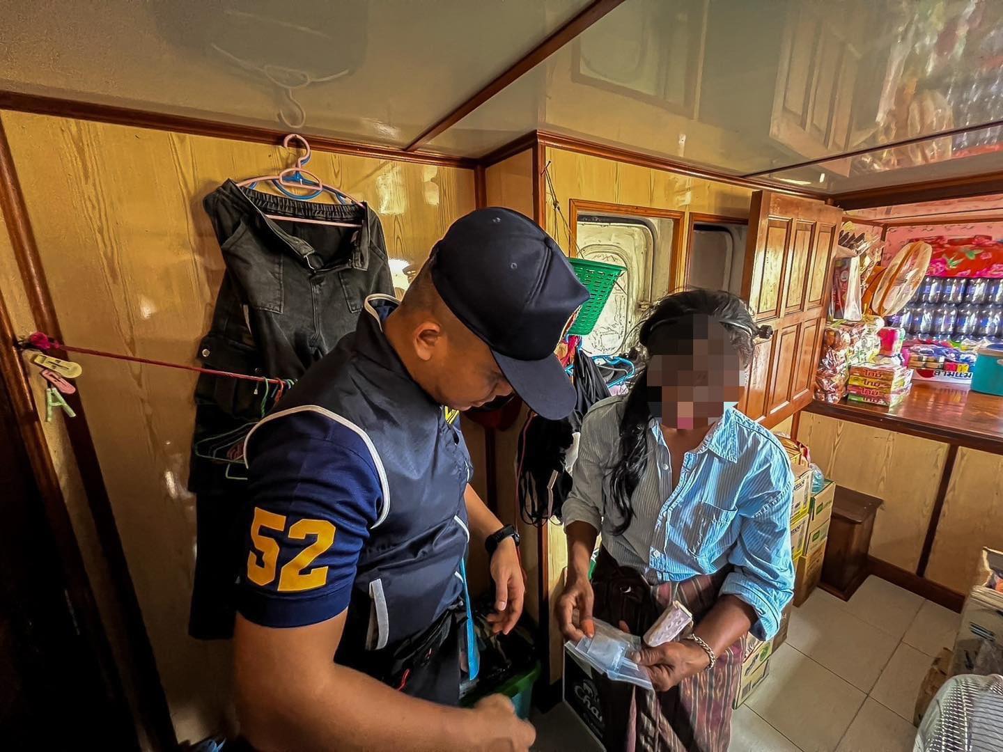 สืบเนื่องจากตำรวจน้ำเกาะสีชังได้นำเรือตรวจการณ์ ออกตรวจป้องกันปราบปรามการกระทำความผิดในเขตพื้นที่รับผิดชอบ และตรวจเรือประมงตามอำนาจหน้าที่ พบผู้ต้องหาซึ่งอยู่บนเรือบรรทุกสินค้าทั่วไป มีพิรุธต้องสงสัย จึงได้แสดงตัวและทำการตรวจค้น ผลการตรวจค้นพบของกลางในห้องพักของผู็ต้องหา เจ้าหน้าที่ชุดจับกุมจึงได้ยึดของกลางและแจ้งข้อกล่าวหาให้ทราบ และควบคุมตัวส่ง พงส.สภ.เกาะสีชัง จว.ชลบุรี ดำเนินคดีตามกฎหมายต่อไป