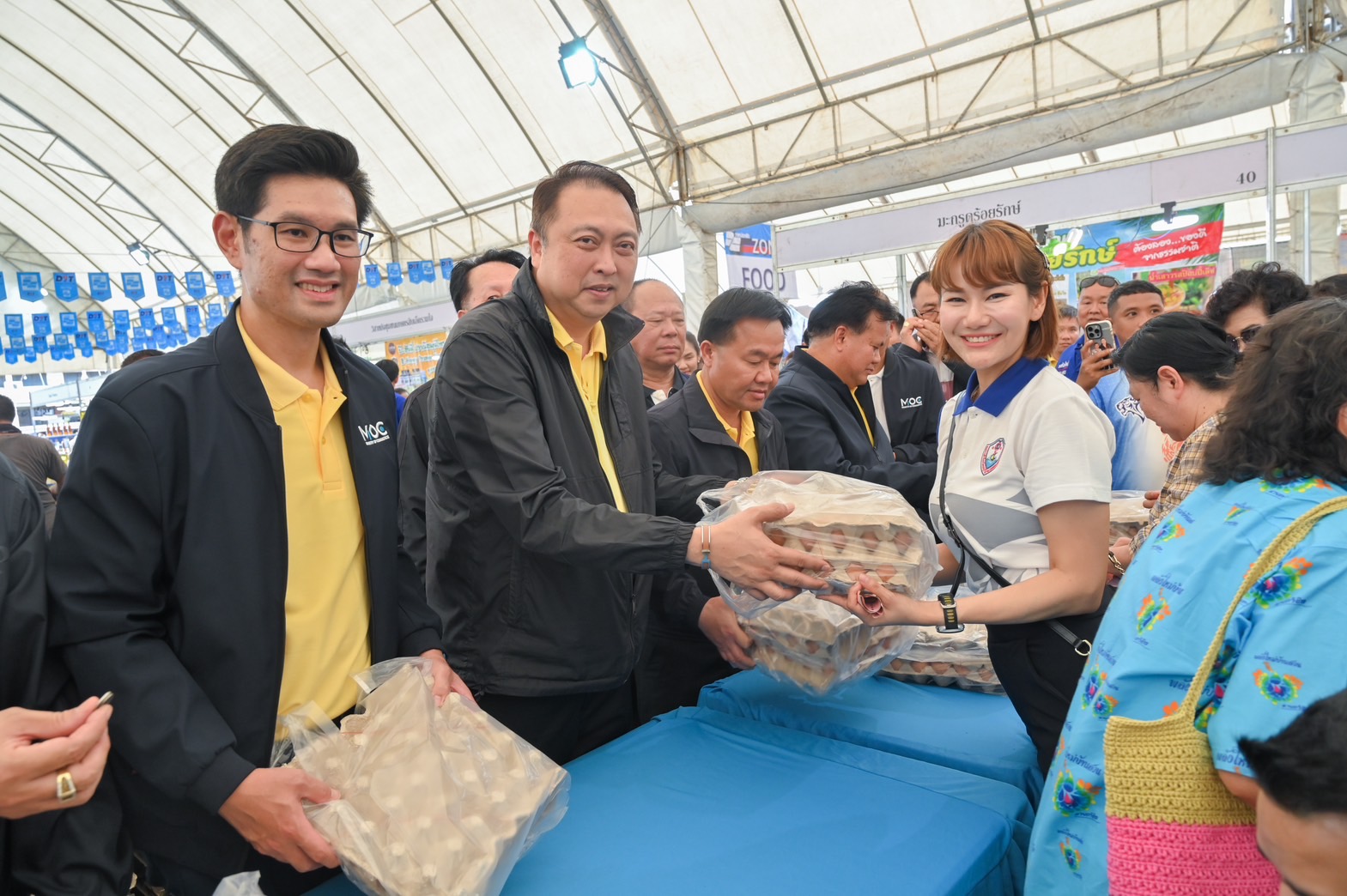 ทั้งนี้ ภายในงานยังมีการจำหน่ายสินค้าไฮไลท์ และสินค้าผลไม้ที่เชื่อมโยงจากกลุ่มเกษตรกร ในราคาพิเศษทุกวัน อาทิ ไข่ไก่เบอร์ M แผงละ 99 บาท น้ำตาลทราย กิโลกรัมละ 23 บาท น้ำมันพืชปาล์ม ขวดละ 39 บาท ข้าวหอมมะลิ 100% (5 กก.) ถุงละ 150 บาท หมูเนื้อแดง กิโลกรัมละ 95 บาท ไก่น่องสะโพก กิโลกรัมละ 65 บาท ลำไยสดช่อ AA กิโลกรัมละ 60 บาท และมังคุดคละ กิโลกรัมละ 60 บาท