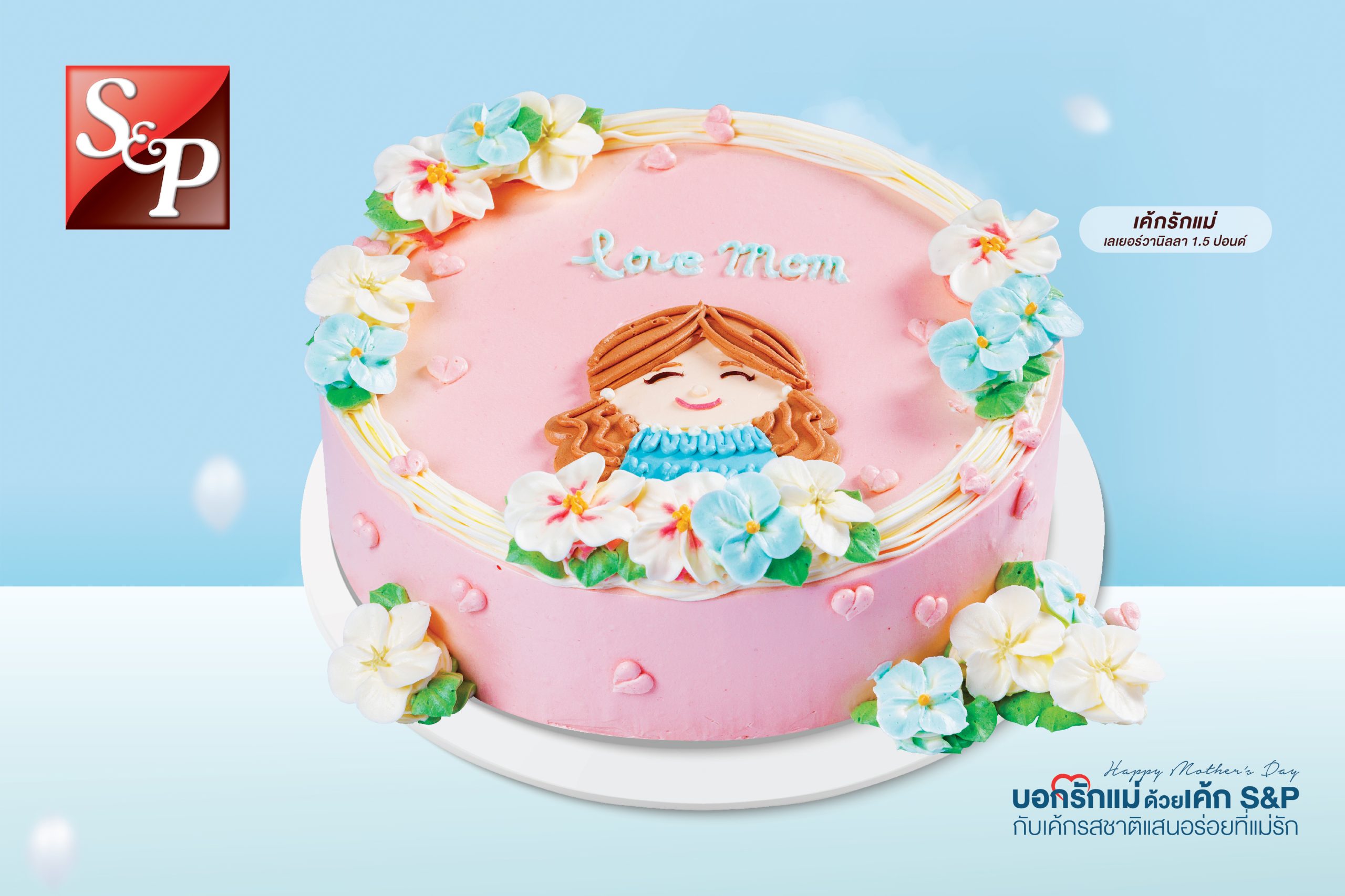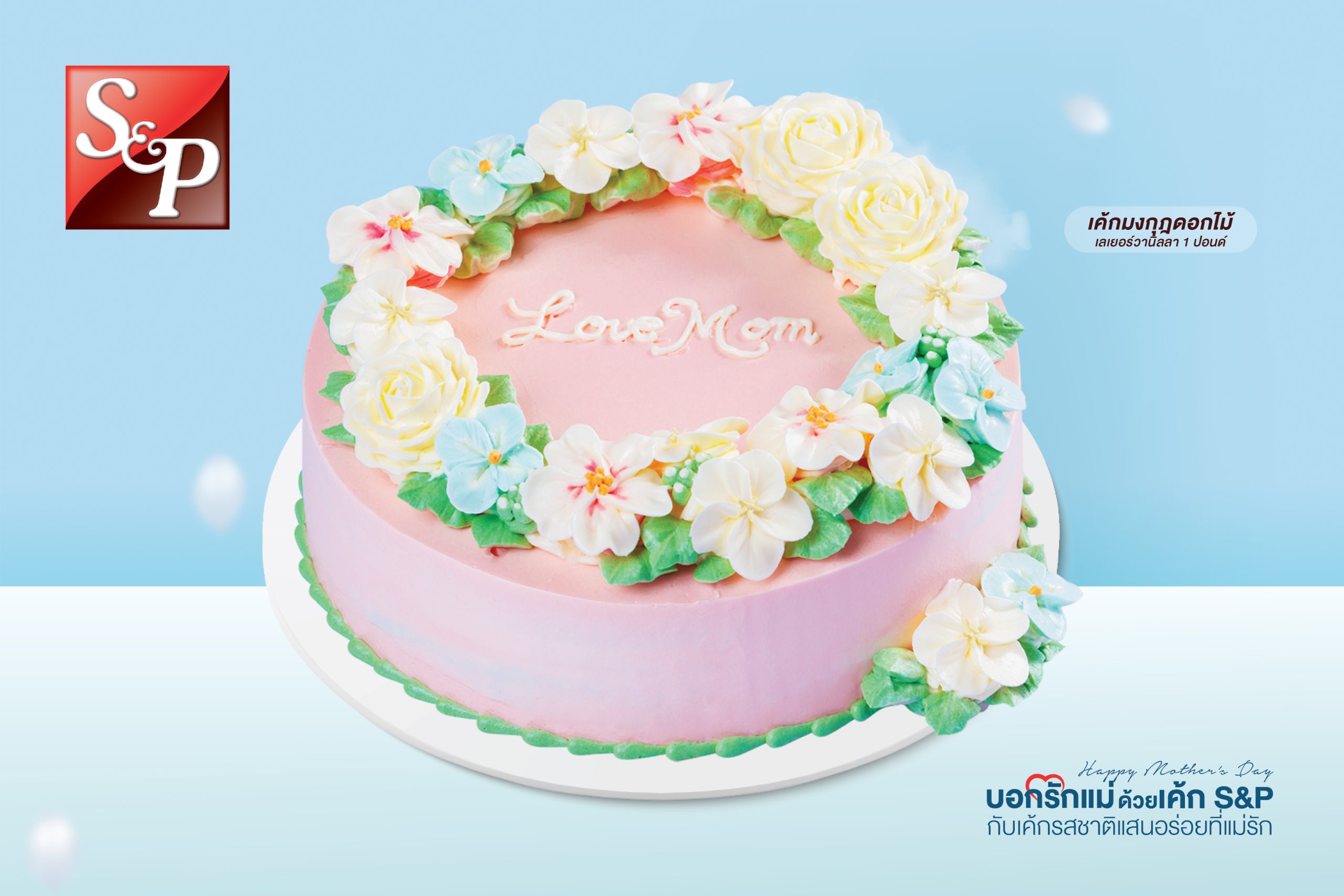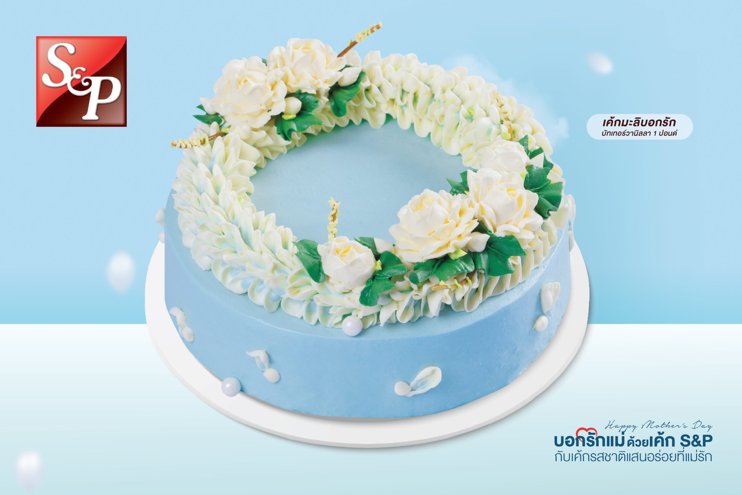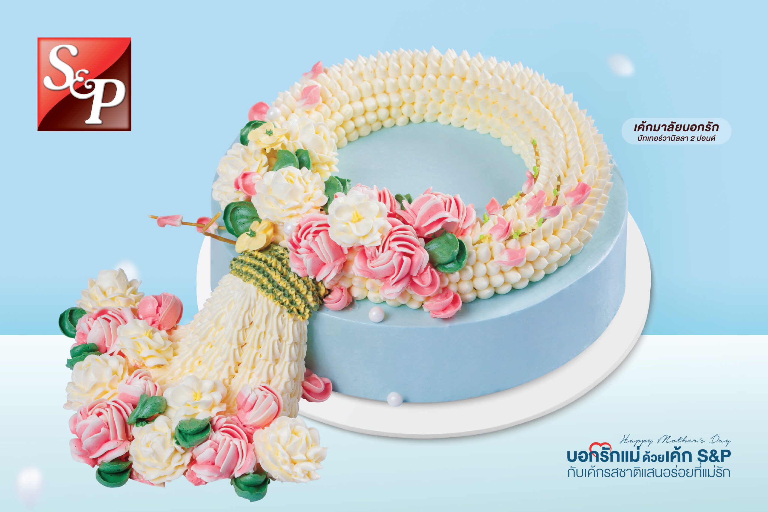วันแม่ปีนี้ บอกรักแม่ด้วยเค้ก S&P กับเค้กดอกไม้ตัวแทนความรักและสายใยจากแม่ถึงลูก 5 รูปแบบ ไม่ว่าจะเป็นเค้กมาลัยบอกรัก กับสีฟ้าตัวแทนสัญลักษณ์วันแม่ เค้กมาลัยชมพู แซมด้วยดอกกุหลาบ ที่รังสรรค์ออกมาอย่างประณีตสวยงาม เพื่อเป็นของขวัญแสนพิเศษจากลูกถึงแม่ นอกจากนี้ยังมีเค้กมะลิบอกรักและเค้กมงกุฎดอกไม้ เป็นตัวเลือกสำหรับแสดงความรักจากลูกถึงแม่อีกด้วย ซึ่งบรรจงออกแบบโดยใช้ดอกมะลิแทนความรักที่บริสุทธิ์ของแม่ ผสานกับดอกไม้รูปแบบต่างๆ และเพิ่มสีสันความน่ารักให้วันแม่ปีนี้ด้วยเค้กรักแม่ ที่มีภาพตัวแทนของแม่ในดีไซน์เค้กสุดพิเศษอีกด้วย