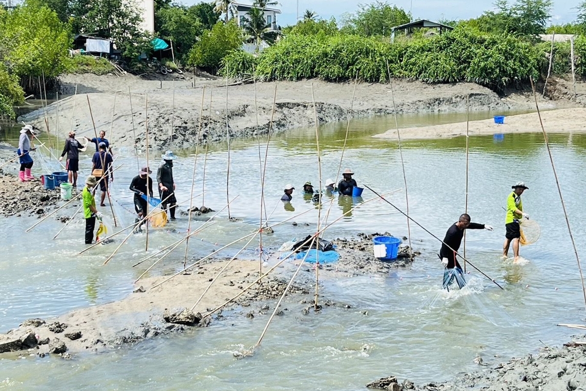สำนักงานประมงจังหวัดเพชรบุรี จัดกิจกรรม “ลงแขกลงคลอง” ผนึกกำลังกับชุมชน เกษตรกร ชาวประมง และเอกชน ช่วยกันจับปลาหมอคางดำออกจากแหล่งน้ำในบริเวณคลองอีแอด ในตำบลแหลมผักเบี้ย อำเภอบ้านแหลม จังหวัดเพชรบุรี สามารถจับปลาหมอคางดำได้กว่า 400 กิโลกรัม และที่สำคัญพบปลากระบอกอีกร่วม 200 กิโลกรัมช่วยสะท้อนว่าระบบนิเวศในคลองอีแอดยังมีความอุดมสมบูรณ์