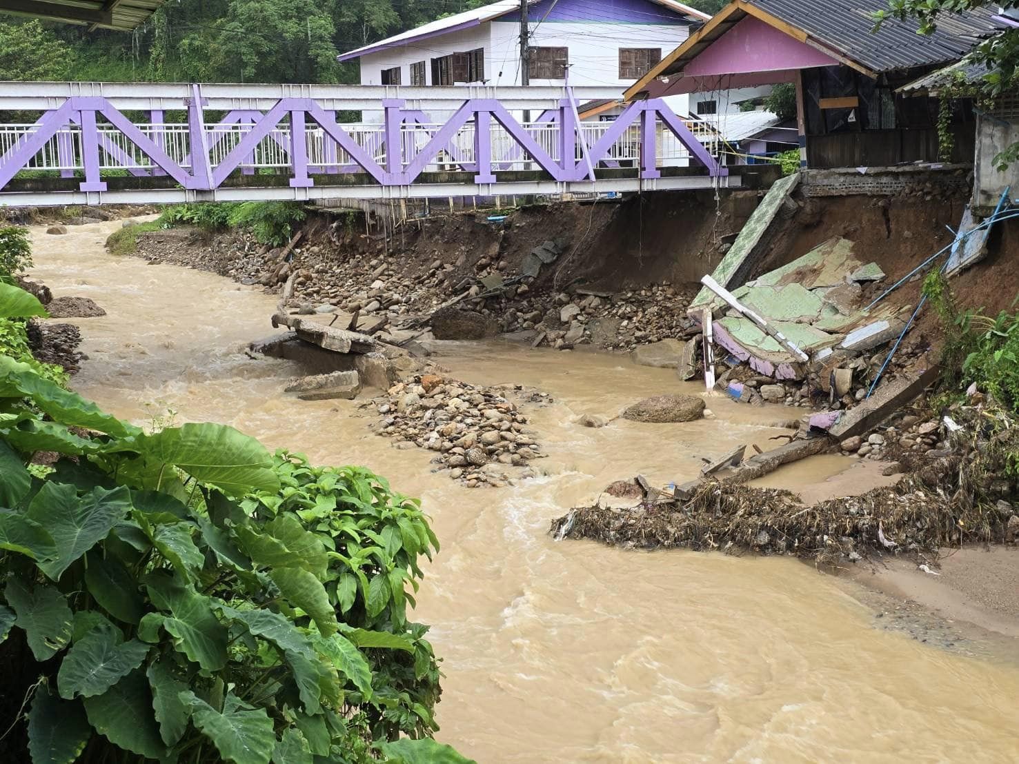 เนื่องจากสถานการณ์ฝนตกหนักในพื้นที่จังหวัดตาก ทำให้เกิดน้ำป่าไหลหลากและเกิดการกัดเซาะตลิ่งบริเวณลำห้วยแม่สลิด ซึ่งใกล้เคียงกับโรงเรียนบ้านแม่สลิดหลวง หมู่ที่ 2 ตำบลแม่สอง อำเภอท่าสองยาง จังหวัดตาก อีกทั้งยังมีตอม่อสะพานเก่ากีดขวางทางน้ำ จึงทำให้น้ำไหลเบี่ยงเส้นทางส่งผลให้อาคารเรียนและอาคารประกอบรวม 4 แห่ง เกิดการทรุดตัวลง