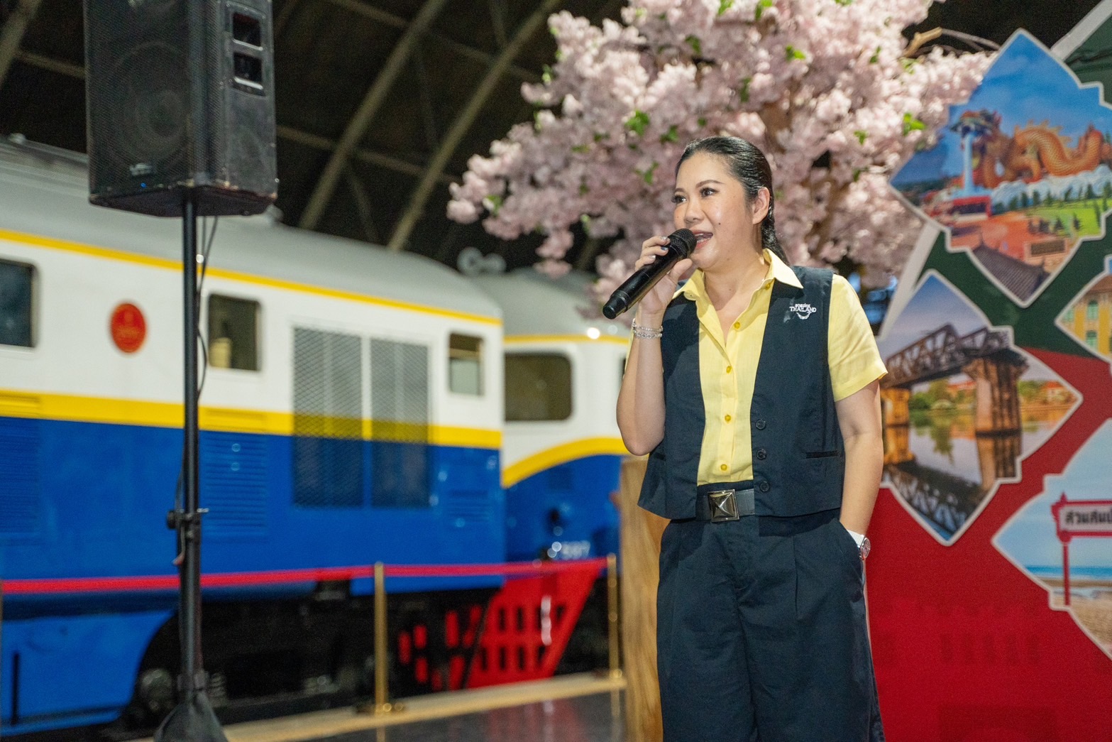 17 สิงหาคม 2567  นางสาวฐาปนีย์ เกียรติไพบูลย์ ผู้ว่าการ ททท. พร้อมด้วย ดร.พิเชฐ คุณาธรรมรักษ์ อธิบดีกรมการขนส่งทางราง นายอวิรุทธ์ ทองเนตร รองผู้ว่าการรถไฟแห่งประเทศไทย ร่วมปล่อยรถไฟขบวน Royal Blossom เส้นทาง กรุงเทพฯ – กาญจนบุรี กับกิจกรรม “สุขทันทีที่เที่ยวกับรถไฟไทย เดินทางครั้งนี้ไม่เหมือนเดิม” ณ สถานีกรุงเทพ (หัวลำโพง) กรุงเทพมหานคร