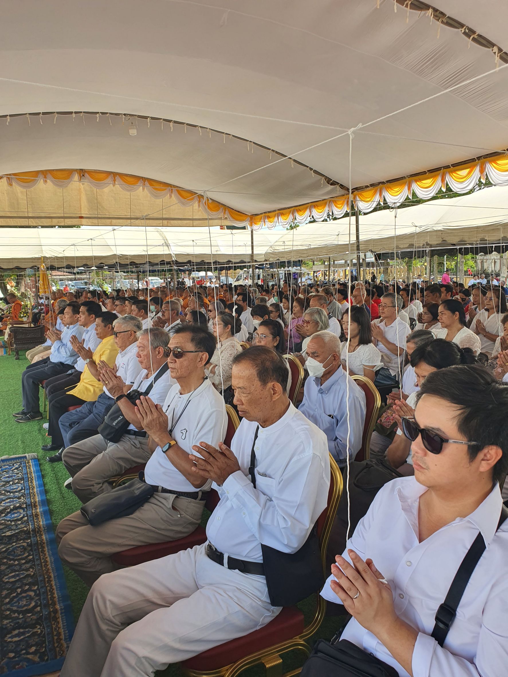 ทุกอย่างความราบรื่น ด้วยหมู่สงฆ์นับร้อยเจริญพระปริตร พระผู้ทรงคุณนั่งปรก ประจำ ๔ ทิศ ท่ามกลางชาวบ้านที่มาร่วมพิธีล้นวัด