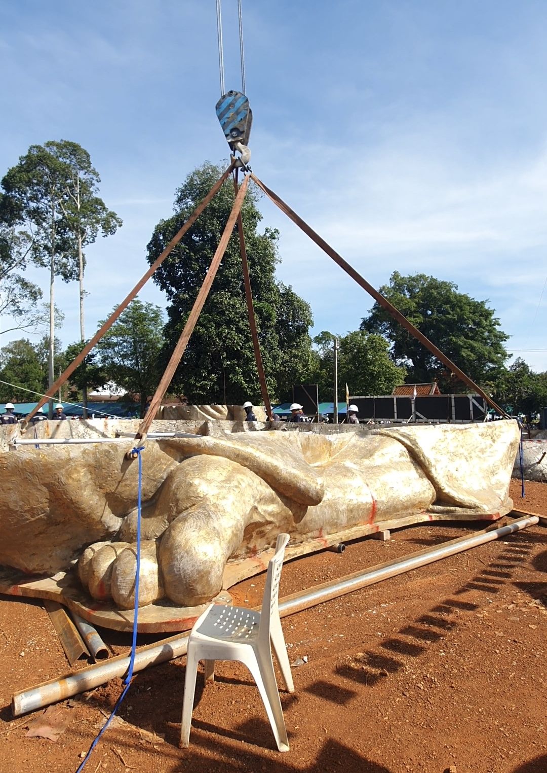 จะถึงขั้นตอนสำคัญ ใช้เครนยักษ์ ยก “หลวงพ่อทวด” ครึ่งองค์ส่วนบน ที่สร้างค้างไว้กว่า ๒๐ ปีแล้ว ขึ้นประกอบกับส่วนล่าง