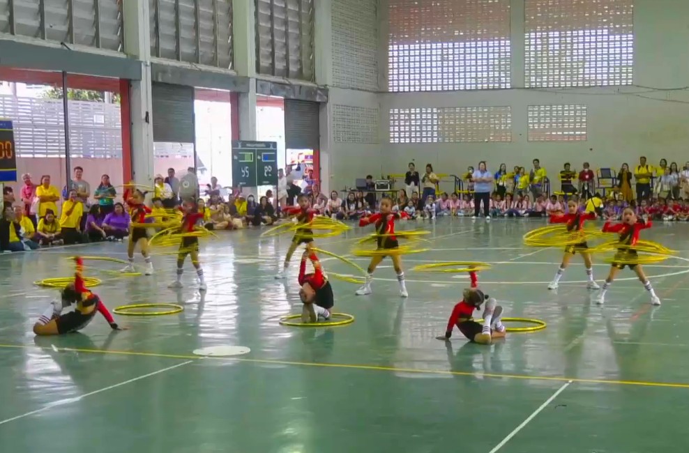 “ที่ผ่านมาเด็ก ๆ ฝึกซ้อมอย่างเข้มข้น โดยครูผู้ฝึกสอนเริ่มเตรียมความพร้อมให้กับเด็กตั้งแต่ภาคเรียนที่ 2 ขณะเรียนชั้นอนุบาล 2 เริ่มจากฝึกท่าง่าย ๆ เช่น หมุนเอว เพื่อให้คุ้นชินกับอุปกรณ์ และฝึกร่างกายให้แข็งแรง จากนั้นจึงพัฒนาไปสู่ท่าที่ยากขึ้น โดยใช้เวลาฝึกซ้อมประมาณ 6 เดือน ซึ่งการแข่งขันบนเวทีเด็ก ๆ ได้โชว์ศักยภาพอย่างเต็มที่ สามารถหมุนฮูล่าฮูป 5 ห่วงพร้อม ๆ กันได้ หนุนเท้าได้ และยังสามารถแปลแถวหลากหลายรูปแบบได้อย่างสวยงามและพร้อมเพรียงกัน ซึ่งเป็นเรื่องยากสำหรับเด็กวัยนี้ ทำให้สามารถเอาชนะใจกรรมการได้สำเร็จ สิ่งสำคัญกว่าผลการแข่งขัน คือเด็ก ๆ ได้ทำกิจกรรมร่วมกันตั้งแต่การฝึกซ้อมจนถึงการแข่งขันวันสุดท้าย เราได้เห็นความคิดสร้างสรรค์ และพัฒนาการที่พัฒนาขึ้นอย่างเหมาะสมตามช่วงวัย ทั้งด้านร่างกาย สติปัญญา อารมณ์ และสังคม เด็ก ๆ มีความพร้อมสำหรับการเรียนรู้ที่สูงขึ้นในอนาคต ซึ่งเป็นความสำเร็จและเป้าหมายที่มากกว่ารางวัลสำหรับการเข้าร่วมกิจกรรมของโรงเรียน และการจัดการศึกษาให้กับลูกหลานของเราทุกคน” นายสำราญ กล่าว