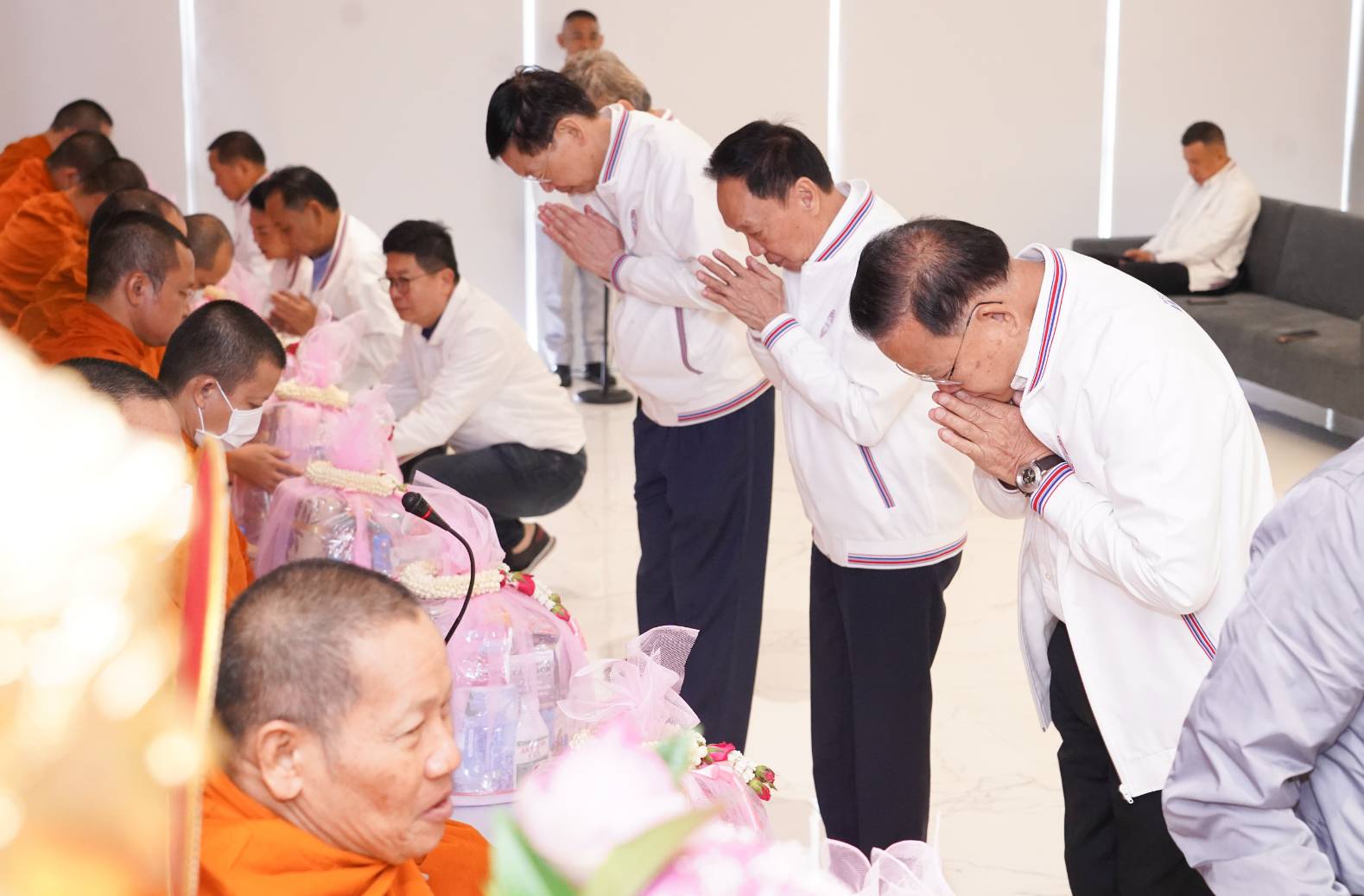จากนั้นในช่วงเช้าได้จัดพิธีสงฆ์ ซึ่งคณะสงฆ์ได้เมตตาสวดบทพระปริตร เจริญพระพุทธมนต์ เพื่อเป็นสิริมงคลในการทำงานของทุกคนให้ราบรื่น และประสบผลสำเร็จในการดำเนินนโยบายของพรรค เพื่อดูแลพี่น้องประชาชน โดยมี พล.อ.ประวิตร วงษ์สุวรรณ หัวหน้าพรรค เป็นประธาน พร้อมด้วยคณะกรรมการบริหาร ประกอบด้วย พล.ต.อ.พัชรวาท วงษ์สุวรรณ ประธานที่ปรึกษาหัวหน้าพรรค, นายสันติ พร้อมพัฒน์ รองหัวหน้าพรรค นายชัยวุฒิ ธนาคมานุสรณ์ รองหัวหน้าพรรค นางสาวตรีนุช เทียนทอง รองหัวหน้าพรรค นายอภิชัย เตชะอุบล รองหัวหน้าพรรค นายไพบูลย์ นิติตะวัน เลขาธิการพรรค พล.อ.กฤษณ์โยธิน ศศิพัฒนวงษ์ เหรัญญิกพรรค พลตำรวจโท ปิยะ ต๊ะวิชัย โฆษกพรรค พร้อมด้วยกรรมการบริหารพรรค สมาชิกพรรคเข้าร่วมพิธี อย่างพร้อมเพรียง