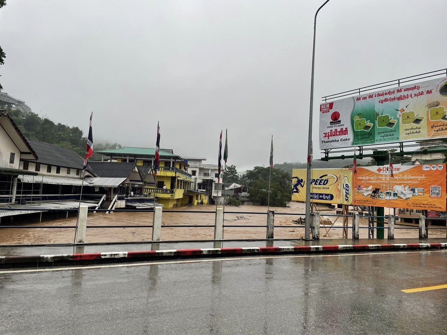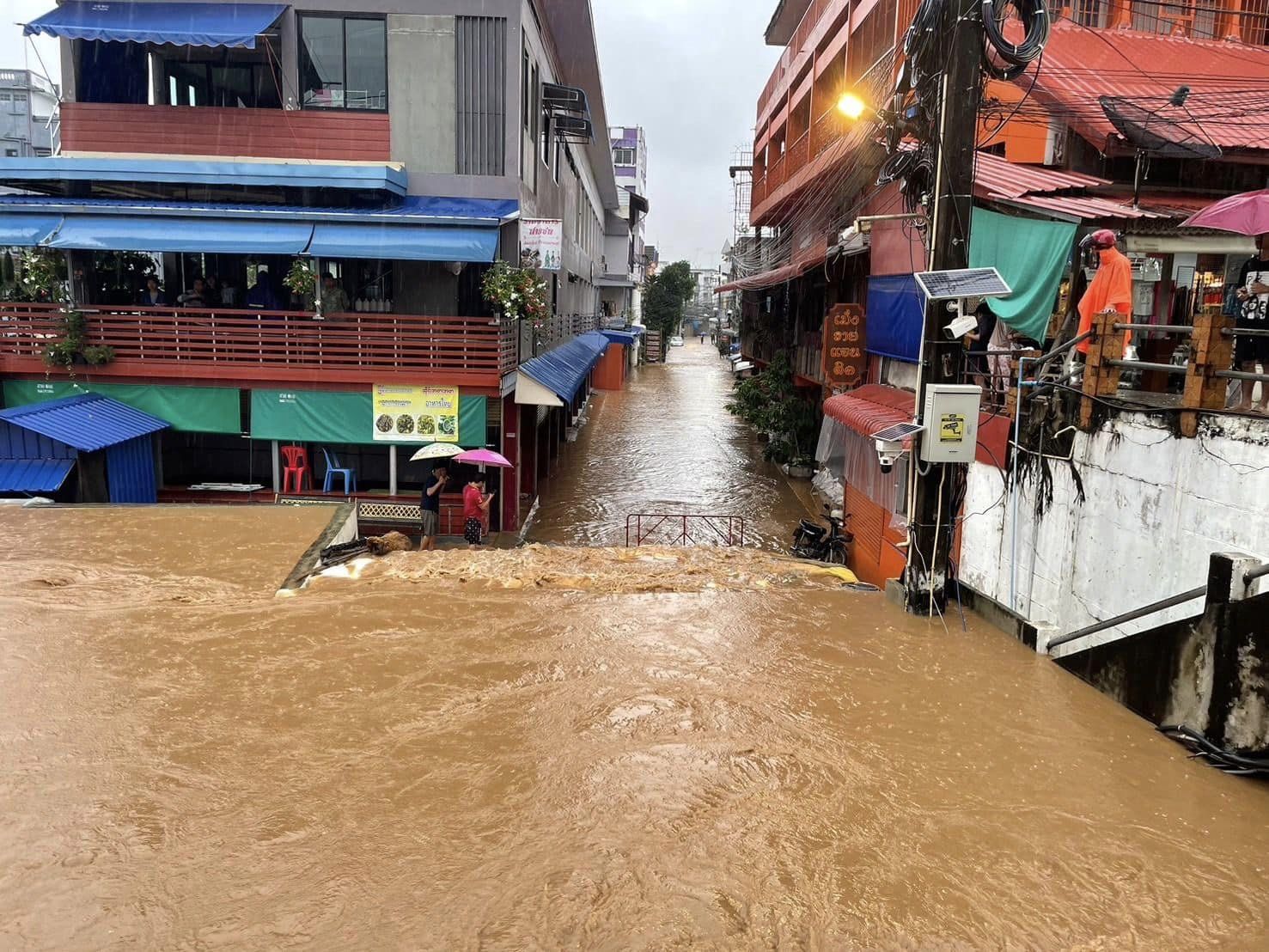 โดยพื้นที่อำเภอแม่สาย เกิดน้ำท่วมพื้นที่ตำบลเวียงพางคำ และตำบลแม่สาย ระดับแม่น้ำสายเพิ่มสูงขึ้นต่อเนื่อง ส่งผลให้น้ำเข้าท่วมเข้าตลาดสายลมจอยและชุมชนแม่สาย ชุมชนหัวฝาย ชุมชนเหมืองแดง ชุมชนไม้ลุงขน ชุมชนเกาะทราย แนวโน้มระดับน้ำเพิ่มมากขึ้นและน้ำล้นพนังกั้นน้ำ ความเสียหายในพื้นที่อยู่ระหว่างสำรวจ ทั้งนี้ เจ้าหน้าที่ได้แจ้งเตือนประชาชนให้ขนย้ายสิ่งของขึ้นที่สูงและอพยพประชาชนไปอยู่ในพื้นที่ปลอดภัยแล้ว ยังไม่มีการรายงานผู้บาดเจ็บหรือเสียชีวิต