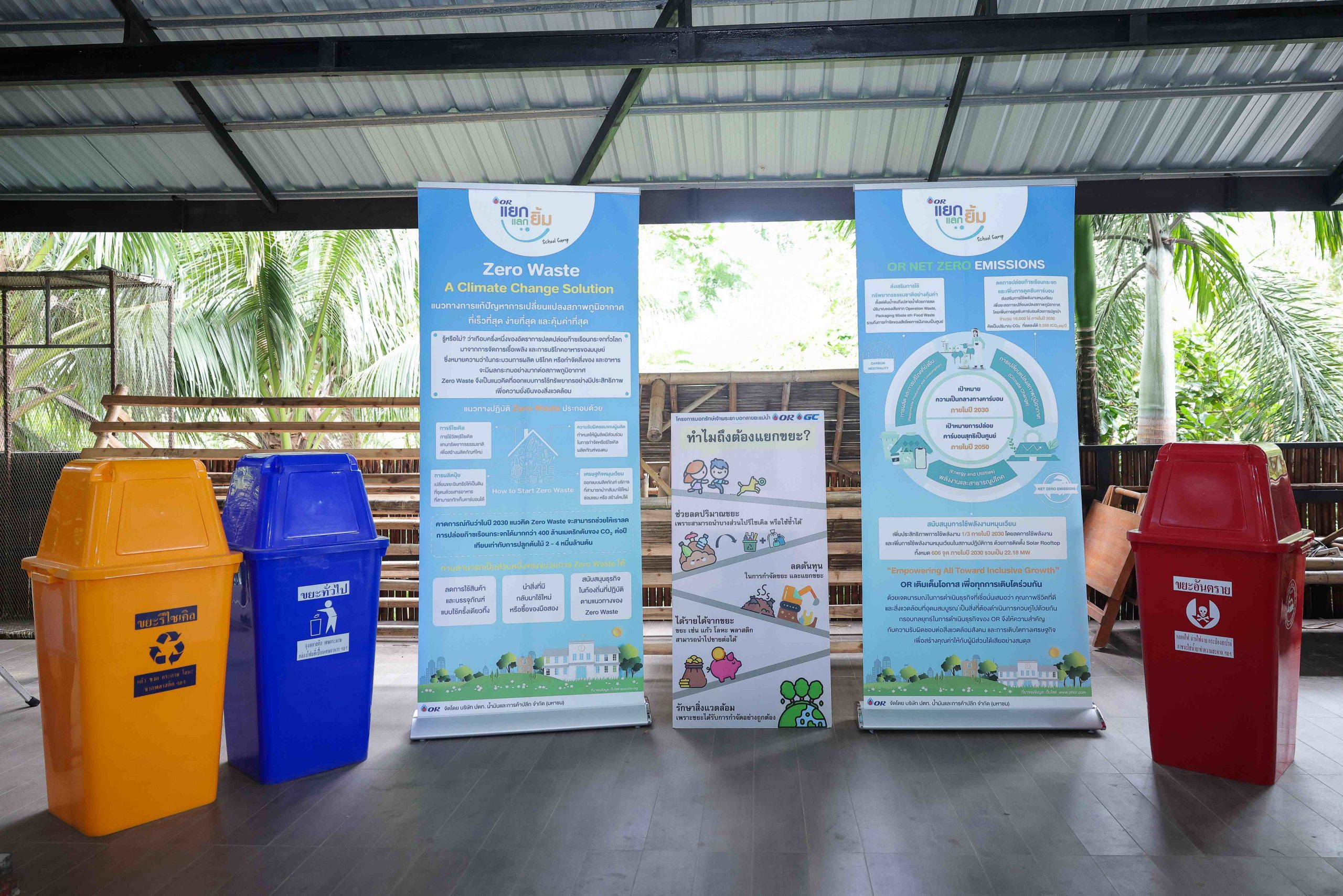 นอกจากนี้ OR ยังมีเป้าหมายในการลดปริมาณขยะจากการดำเนินธุรกิจลง 1 ใน 3 ภายในปี ค.ศ. 2030 และเป้าหมายการปล่อยก๊าซเรือนกระจกสุทธิเป็นศูนย์ หรือ Net Zero ในปี 2050 สอดคล้องแนวทาง OR SDG โดยเฉพาะในด้าน “G – Green” ด้วยการสร้างโอกาสเพื่อสังคมสะอาด (Low Carbon Business Area) โดยมุ่งเน้นการส่งเสริมให้ชุมชนและเยาวชนมีความรู้ความเข้าใจในการคัดแยกขยะผ่านโครงการเพื่อสังคมต่างๆของ OR ได้แก่ โครงการ แยก แลก ยิ้ม School Camp โครงการ แยก แลก ยิ้ม Green Innovation Contest โครงการ Zero waste เสาไห้ จ.สระบุรี