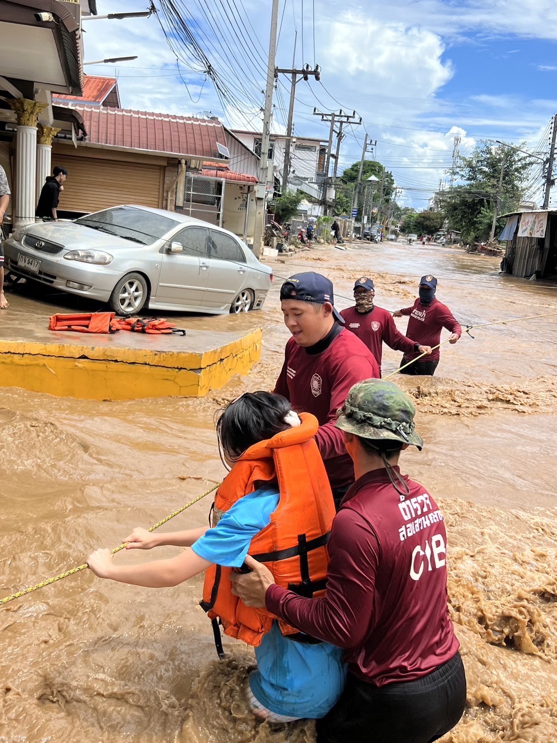 เมื่อวันที่ 13 ก.ย.67 เริ่มเวลา 08.00 เจ้าหน้าที่ เข้าช่วยเหลือประชาชนผู้ประสบอุทกภัย ในเขตพื้นที่ อ.แม่สาย จว.เชียงราย โดยมีภารกิจ ช่วยเหลือเด็กและครอบครัวประชาชน รวมถึงสัตว์เลี้ยง ที่ติดค้างอยู่ในพื้นที่อันตราย สู่พื้นที่ปลอดภัย พร้อมลำเลียงเสบียงอาหารประทังชีพ สำหรับประชาชนที่ติดอยู่ในพื้นทึ่ โดยอาศัยอยู่บริเวณชั้นสองของอาคารบ้านเรือน อีกทั้งพบชายชาวต่างชาติ ลักษณะคล้ายคนไร้บ้าน ภายในอาคารปิดร้าง จึงช่วยเหลือสู่พื้นทึ่ปลอดภัยก่อนสอบถามยืนยันตัวตนต่อไป
