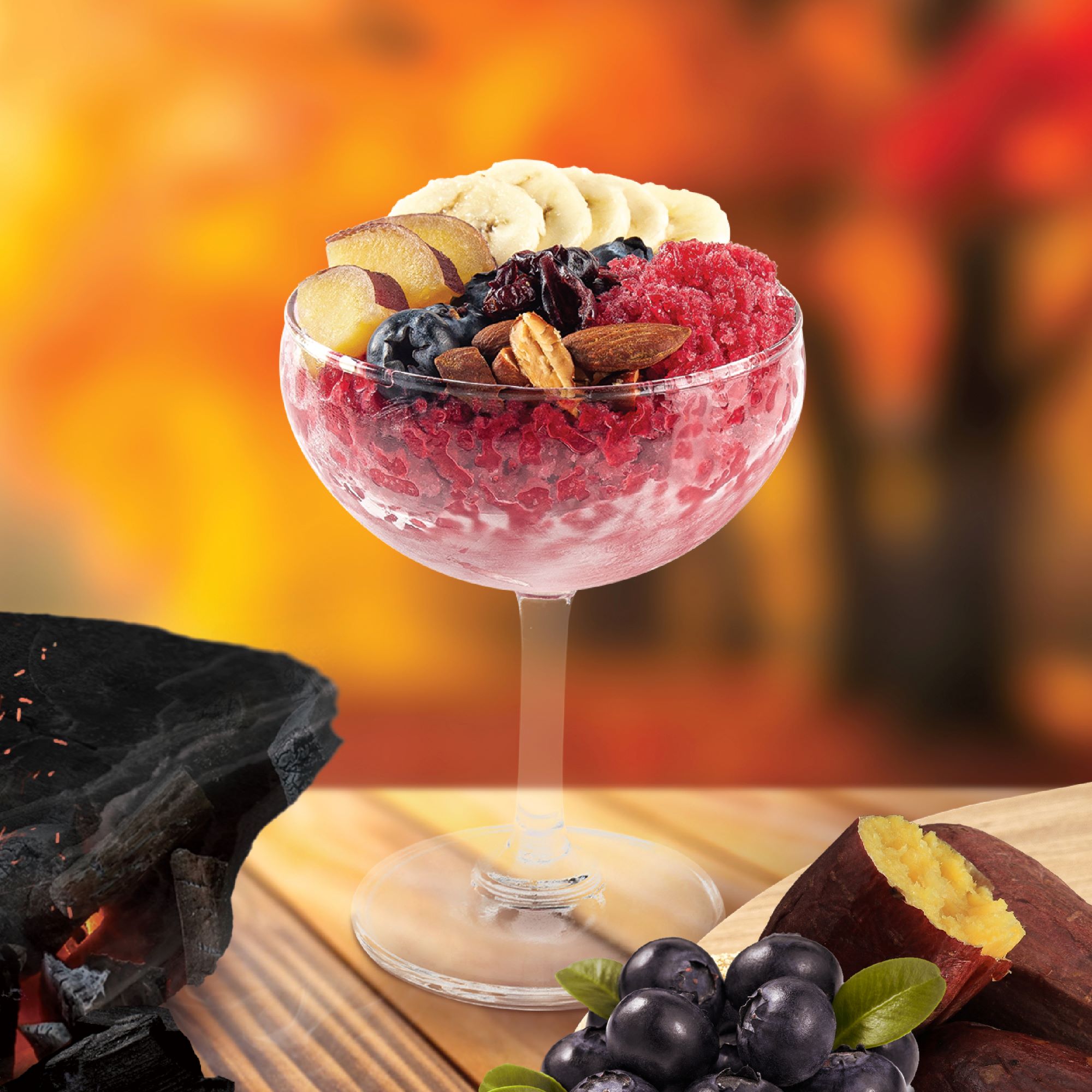 “MOMIJI FESTIVAL” 10 เมนูสุดพิเศษ ต้อนรับเทศกาลใบไม้เปลี่ยนสี เริ่มที่ Acai Berry-Imo Roll ใหม่! โรลเค้กมันหวานญี่ปุ่น ‘Satsuma Imo’ จากเกาะคิวชู ม้วนด้วยครีมสดอาซาอิเบอร์รี่ สอดไส้มันหวานเผาเนื้อเนียน ท็อปปิ้งมองบลังค์มันหวานบดหอมนุ่ม และบลูเบอร์รี่สด เฉพาะฤดูกาลนี้เท่านั้น!!