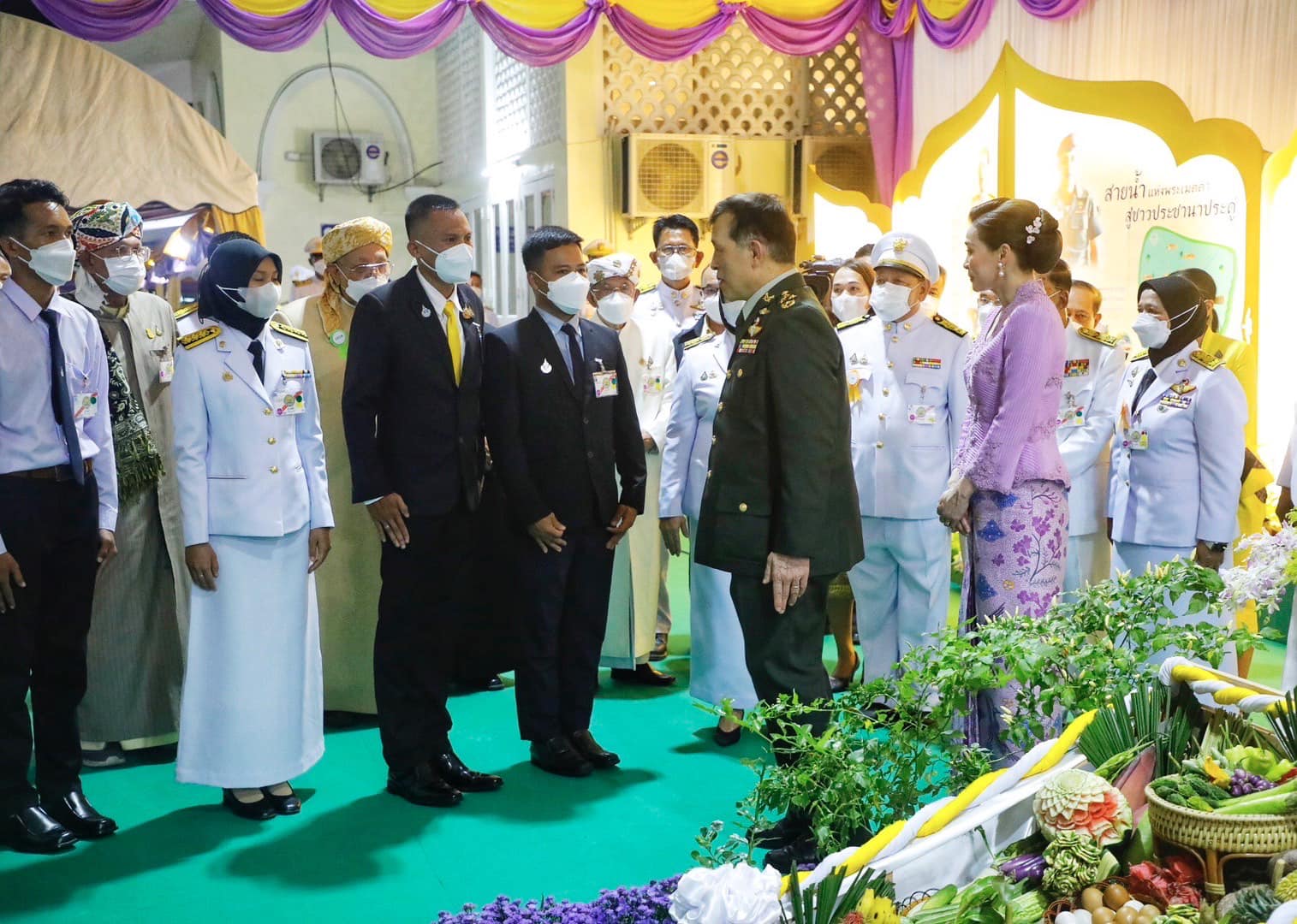 ต่อมาเสด็จพระราชดำเนินไปทอดพระเนตรนิทรรศการเฉลิมพระเกียรติพระบาทสมเด็จพระเจ้าอยู่หัว เนื่องในโอกาสพระราชพิธีมหามงคลเฉลิมพระชนมพรรษา 6 รอบ 28 กรกฎาคม 2567 โดยจัดแสดงนิทรรศการเกี่ยวกับโครงการพัฒนาแหล่งน้ำอันเนื่องมาจากพระราชดำริในพื้นที่สามจังหวัดชายแดนภาคใต้ ปัจจุบันมี จำนวน 43 โครงการ ประกอบด้วย จังหวัดนราธิวาส 24 โครงการ จังหวัดปัตตานี 7 โครงการ และจังหวัดยะลา 12 โครงการ กับทอดพระเนตรนิทรรศการโครงการกองทุนการศึกษา “ให้โรงเรียนสร้างคนดี ให้บ้านเมือง” ซึ่งจังหวัดปัตตานีมีโรงเรียนเข้าร่วมโครงการ 2 โรงเรียน ได้แก่ โรงเรียนบ้านวังกว้าง และโรงเรียนบ้านตะโละไกรทอง