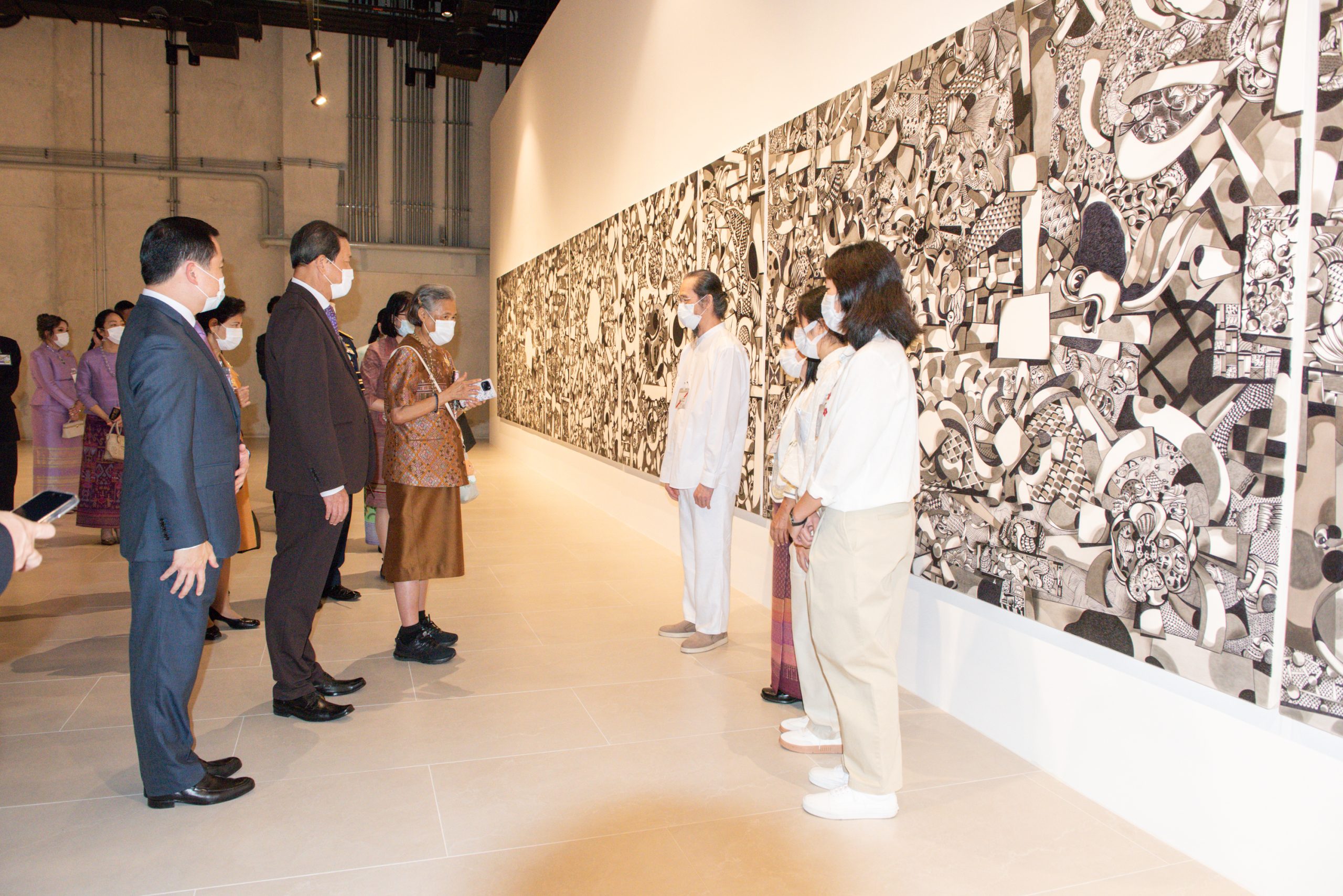 ศาสตราจารย์ ดร.อภินันท์ โปษยานนท์ ประธานอำนวยการและผู้อำนวยการศิลป์ บางกอกอาร์ต เบียนนาเล่ ศาสตราจารย์ถาวร โกอุดมวิทย์ นายนิติกร กรัยวิเชียร กรรมการโครงการ บางกอก อาร์ต เบียนนาเล่ นางต้องใจ ธนะชานันท์ ผู้อำนวยการคณะจัดงาน Sustainability Expo 2024 (SX 2024) และคณะผู้จัดงานเฝ้าฯ รับเสด็จ เมื่อวันอังคารที่ 1 ตุลาคม 2567 เวลา 09.00 น. ณ ศูนย์การประชุมแห่งชาติสิริกิติ์