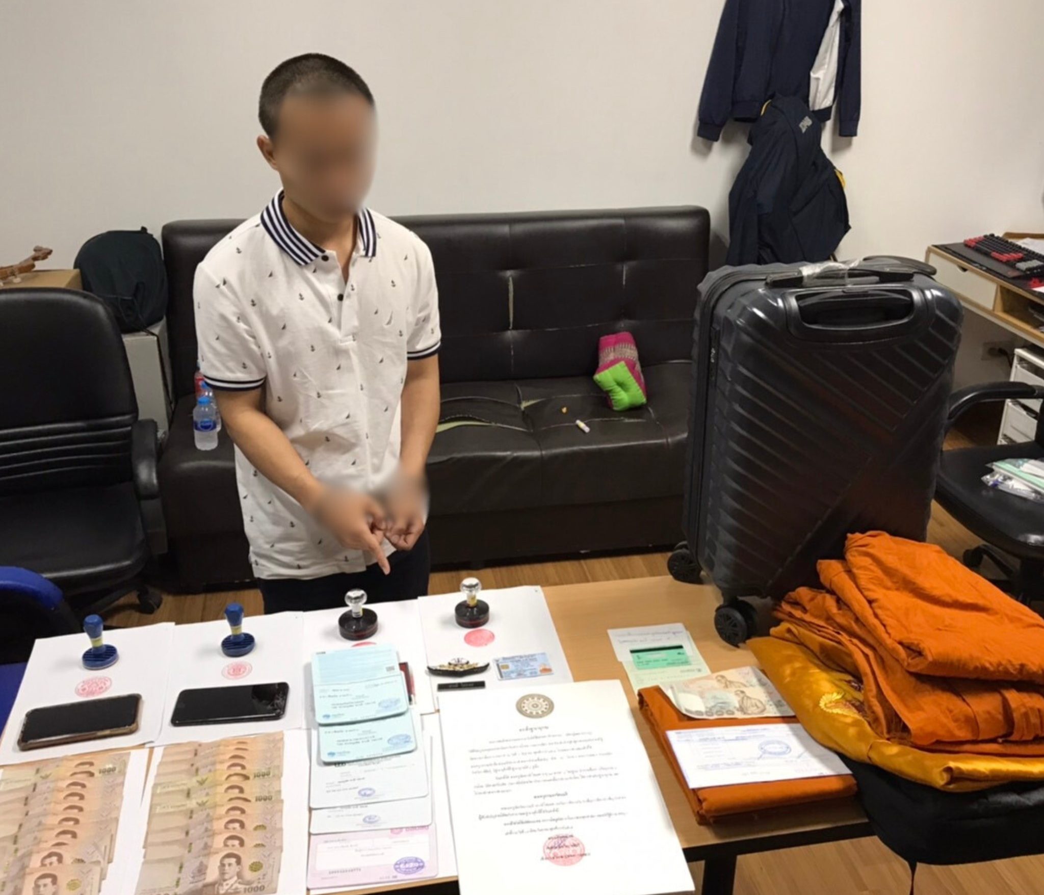 สืบเนื่องจากชุดลาดตระเวนออนไลน์ กก.สส.4 บก.สส.บช.น. ได้ตรวจพบการกระทำความผิดทางออนไลน์ จากเพจ Drama-addict ได้แจ้งเตือนภัยเกี่ยวกับมิจฉาชีพ ที่สร้างเพจปลอมใช้ชื่อว่า “พระครูวินัยธรธรรมวงศ์ วชิระโมลี ฯ.” โพสต์หลอกให้ร่วมทำบุญต่างๆ จึงได้ทำการสืบสวนจนทราบว่าคนร้ายเป็นใครและได้ออกติดตาม