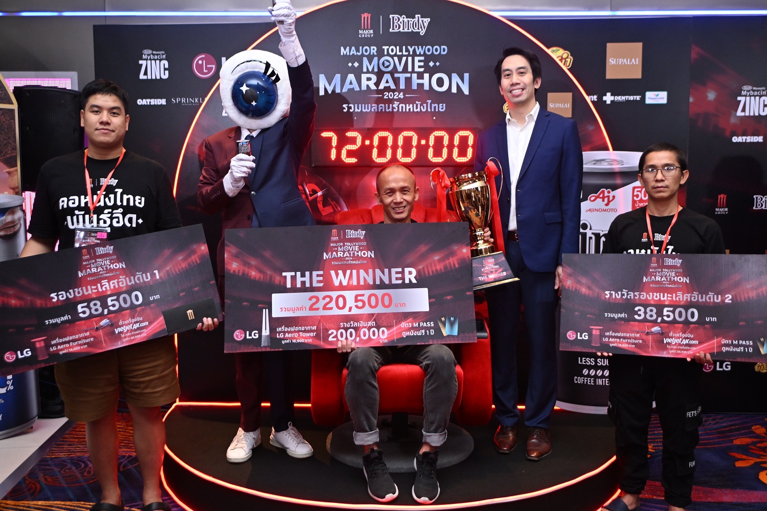 รู้ผลเป็นที่เรียบร้อยแล้วสำหรับแชมป์ดูหนังมาราธอน “MAJOR TOLLYWOOD MOVIE MARATHON 2024” เรียกได้ว่าลุ้นนาทีต่อนาทีสำหรับการแข่งขันที่ค้นหาคนแฟนพันธุ์แท้หนังไทยที่มีทั้งความอึด ความอดทน มาประลองความแกร่งดูหนังมาราธอนที่ยาวนานถึง 72 ชั่วโมง ตั้งแต่วันที่ 15 พฤศจิกายน – 18 พฤศจิกายน เวลา 12.00 น. ณ โรงภาพยนตร์เมเจอร์ ซีนีเพล็กซ์ รัชโยธิน โรงที่ 13