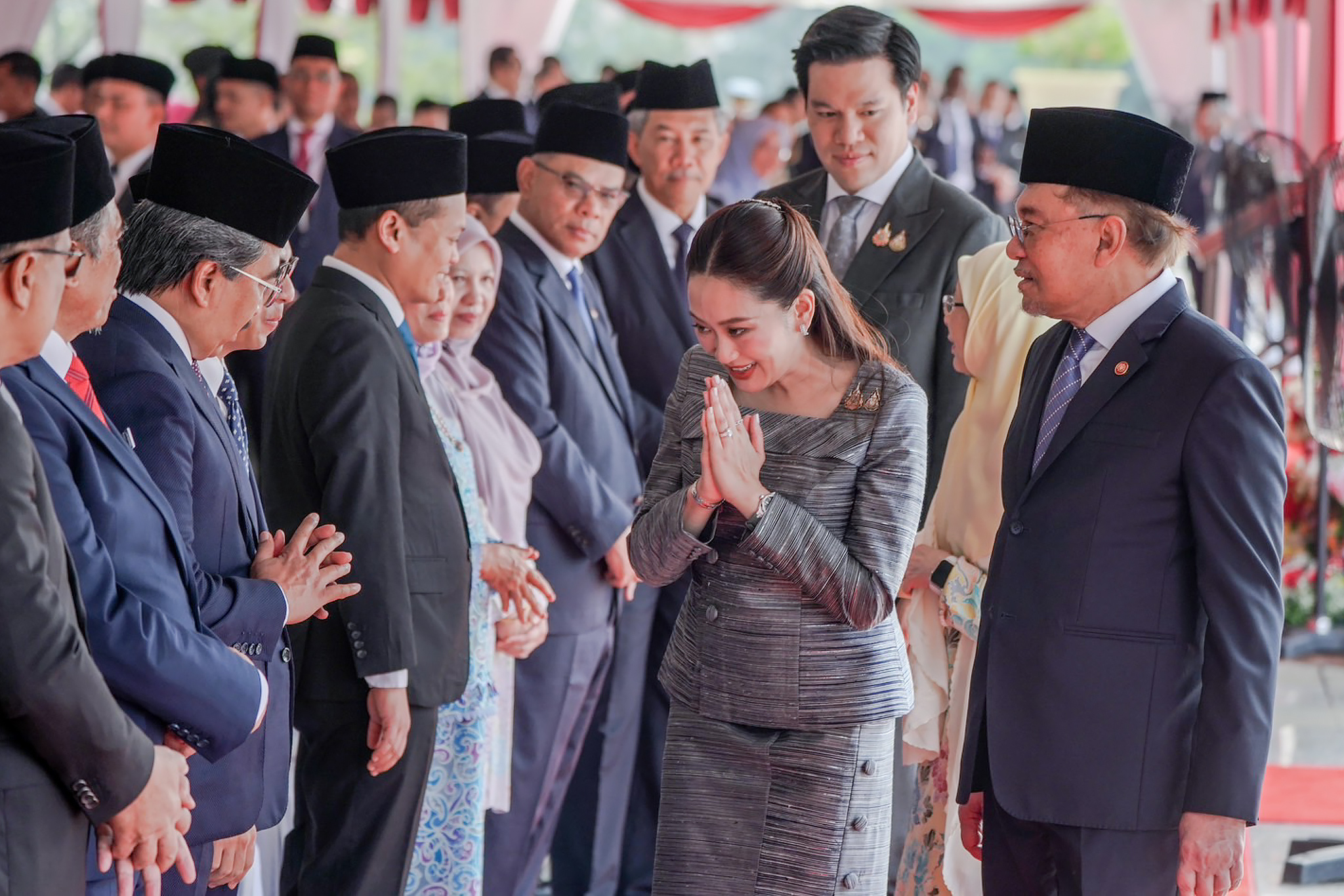 16 ธันวาคม 2567 เวลา 09.00 น. ตามเวลาท้องถิ่น ณ เมืองปูตราจายา ประเทศมาเลเซีย ซึ่งเร็วกว่าประเทศไทย 1 ชั่วโมง น.ส.แพทองธาร ชินวัตร นายกรัฐมนตรี เข้าร่วมพิธีต้อนรับอย่างเป็นทางการ ในโอกาสเดินทางเยือนมาเลเซียอย่างเป็นทางการในฐานะแขกของรัฐบาลมาเลเซีย โดยดาโตะ เซอรี อันวาร์ อิบราฮิม นายกรัฐมนตรีมาเลเซีย ร่วมพิธีตรวจแถวทหารกองเกียรติยศ