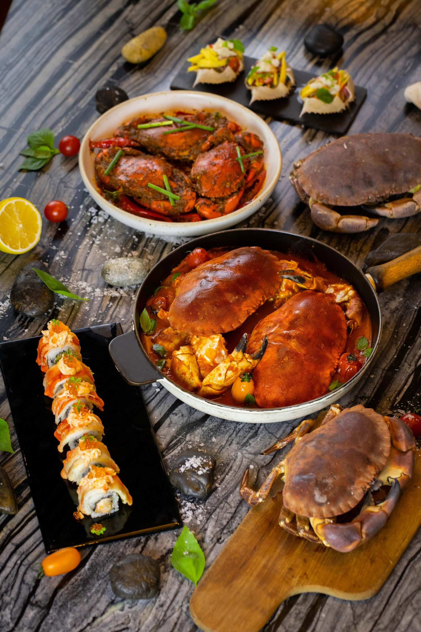 ดื่มด่ำไปกับโปรโมชั่น ‘Ultimate Crab’ ที่รวบรวมปูไว้หลากหลายสายพันธุ์ อาทิ ปูม้า ปูจักรพรรดิ ปูทะเล ปูยักษ์จากฝรั่งเศส หรือ Atlantic Brown Crab และ ปูหิมะ หรือ Snow Crab นำเข้าจากญี่ปุ่น ให้เลือกรับประทานกันได้อย่างเต็มที่ตามแบบฉบับที่คุณต้องการ อิ่มอร่อยอย่างต่อเนื่องไปกับเมนูปูสุดพิเศษ ที่เชฟยอดฝีมือรังสรรค์ขึ้นมา ทั้งอาหารไทย อาหารจีน อาหารญี่ปุ่น และอาหารอิตาเลียน อาทิ สตูว์ทะเล Cacciucco สไตล์ทัสคานี ซูชิโรลเนื้อปู (สไปซี่ คิง แครป โรล) ขนมจีนน้ำยาปู สูตรต้นตำรับภูเก็ต และ Cher Yam Tian หรือปูผัดพริกในซอสรสชาติเข้มข้นสไตล์สิงคโปร์
