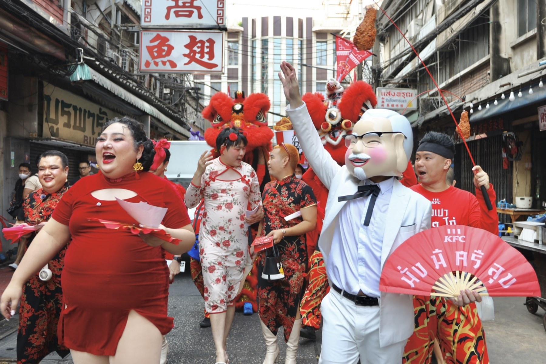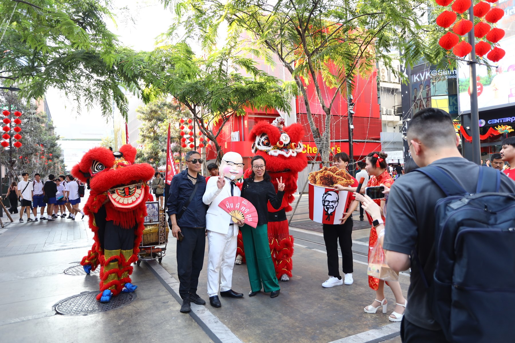 ตรุษจีนปี 2568 นี้ KFC ประเทศไทย จัดเซอร์ไพรส์ครั้งใหญ่ นำผู้พันแซนเดอร์สมาแปลงโฉมเป็น “แป๊ะยิ้ม” สุดน่ารักพัดโชคดีมาให้ลูกหลาน พร้อมนำทีมคณะเชิดสิงโตแบบใหม่ทำถึง ซึ่งเป็นครั้งแรกของ KFC ประเทศไทย ที่มีการจัดขบวนแห่ตรุษจีนเช่นนี้! ก่อนพาแป๊ะแซนเดอร์สลงพื้นที่พบปะผู้คนที่ออกมาจับจ่ายในวันที่ 27 มกราคม 2568 (วันจ่าย) ที่ผ่านมาอย่างใกล้ชิด ตามย่านฮอตฮิตในวันตรุษจีน เพื่อสร้างสีสัน มอบคำอวยพร ให้ทุกคนเฮงๆ ปังๆ ต้อนรับปีใหม่จีน เรียกรอยยิ้มและความสนใจจากผู้คนที่ผ่านไปมาอย่างล้นหลาม