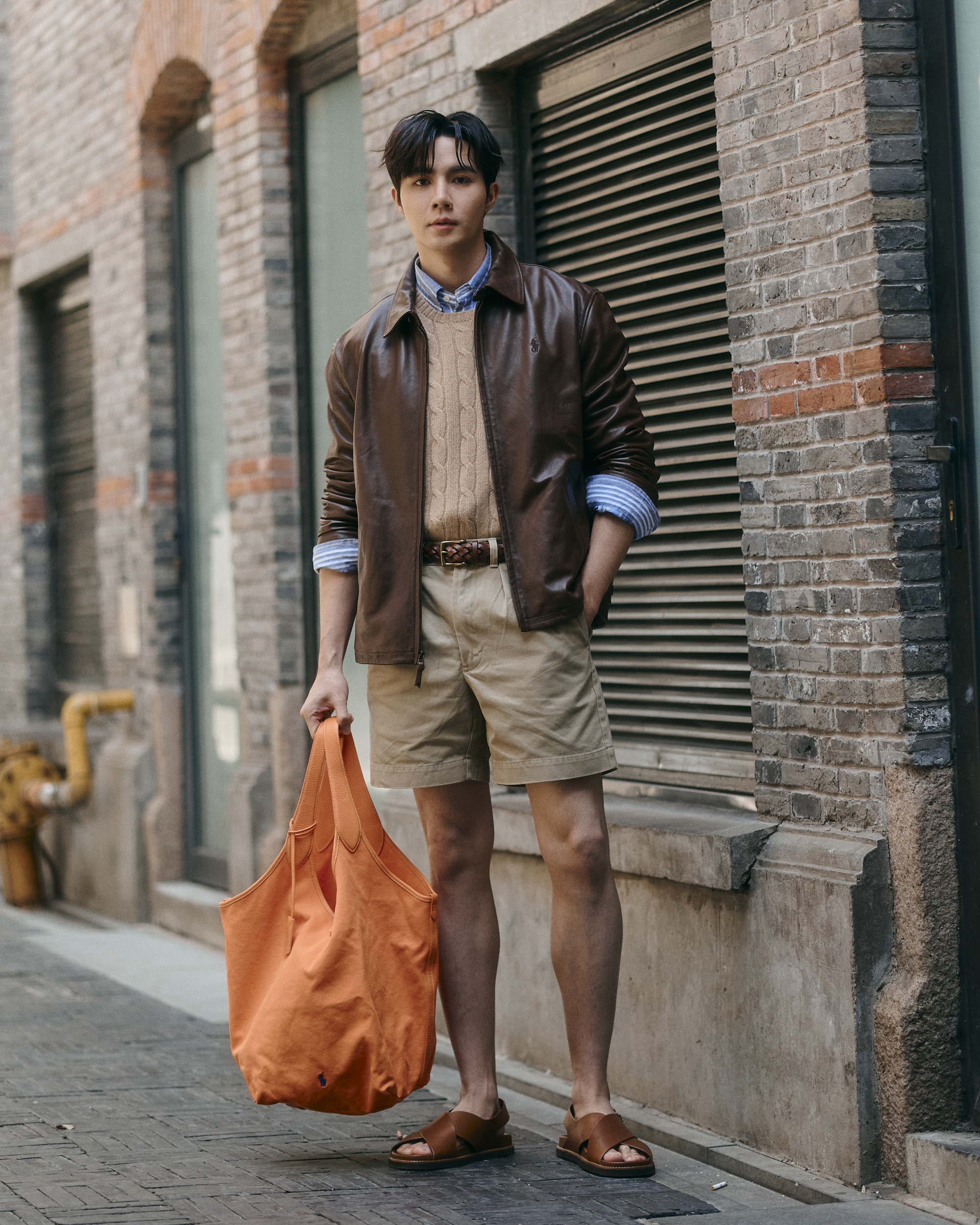 เริ่มกันที่ลุกของหนุ่ม ซี พฤกษ์ โชว์สกิลการมิกซ์แอนด์แมตช์กับสองลุกสุดคูล ด้วยการครีเอตลุกเสื้อผ้าหลายเลอร์เยอร์ตามแบบฉบับแบรนด์ เริ่มลุกแรกที่หยิบเสื้อเชิ้ตอ็อกซ์ฟอร์ดสีฟ้าลายทาง สวมทับด้วยสเวตเตอร์ถักและแจ็กเก็ตหนังสีน้ำตาล แมตช์กับกางเกงขาสั้นและรองเท้าสไตล์แกลดิเอเตอร์ พร้อมด้วยกระเป๋า Polo Play Canvas Tote สุดฮิตที่ทุกคนต้องมี ช่วยเสริมลุกให้ดูทันสมัยแต่ยังคงกลิ่นอายในสไตล์เพรพพี ส่วนอีกลุกคเน้นการเล่นสีโทนเย็นอย่างสีน้ำเงินและครามเป็นหลัก โดยจับคู่เสื้อยืดพิมพ์ลาย ทับเลเยอร์ด้วยสเวตเตอร์สีเขียว และคลุมด้วยแจ็กเก็ตเดนิมสีฟ้าผ้าลายทางซึ่งเป็นหัวใจหลักของลุกนี้ แมตช์กับกางเกงขายาวสีขาว