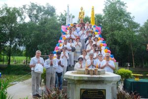 นพ.สวรรค์ กาญจนะ ประธานดำเนินการ รศ.ดร.จุฑามาศ สัตยวิวัตน์ ประธานจัดสร้าง ปฎิมากร ผศ.ดร.ฐิติพันธ์ จันทร์หอม