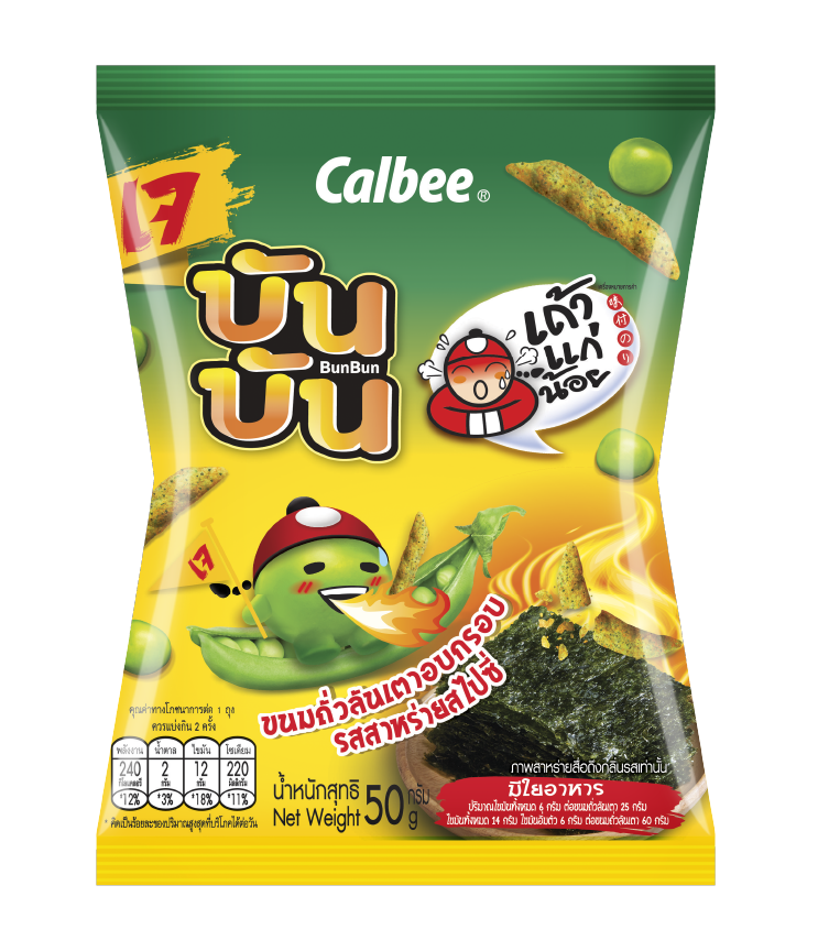 บันบัน รสสาหร่ายสไปซี่ คือขนมที่ผสานความหอมมันของถั่วลันเตาเข้ากับรสชาติสาหร่ายสไปซี่ได้อย่างลงตัว โดยการนำสาหร่ายอบเถ้าแก่น้อย นำไปป่นเป็นสาหร่ายผงละเอียด แล้วนำไปโรยบนขนมของบันบัน ปรุงรสชาติเพิ่มความเผ็ดร้อนให้อร่อย จัดจ้านยิ่งขึ้น ซึ่งหมายความว่า ขนมของบันบันทุกชิ้น จะมีสาหร่ายคุณภาพจากเถ้าแก่น้อยอยู่บนขนม ซึ่งเราหวังเป็นอย่างยิ่งว่าทุกคนจะได้ลองลิ้มรสความอร่อยใหม่ในโอกาสนี้ครับ” นายทาคาชิ กล่าว