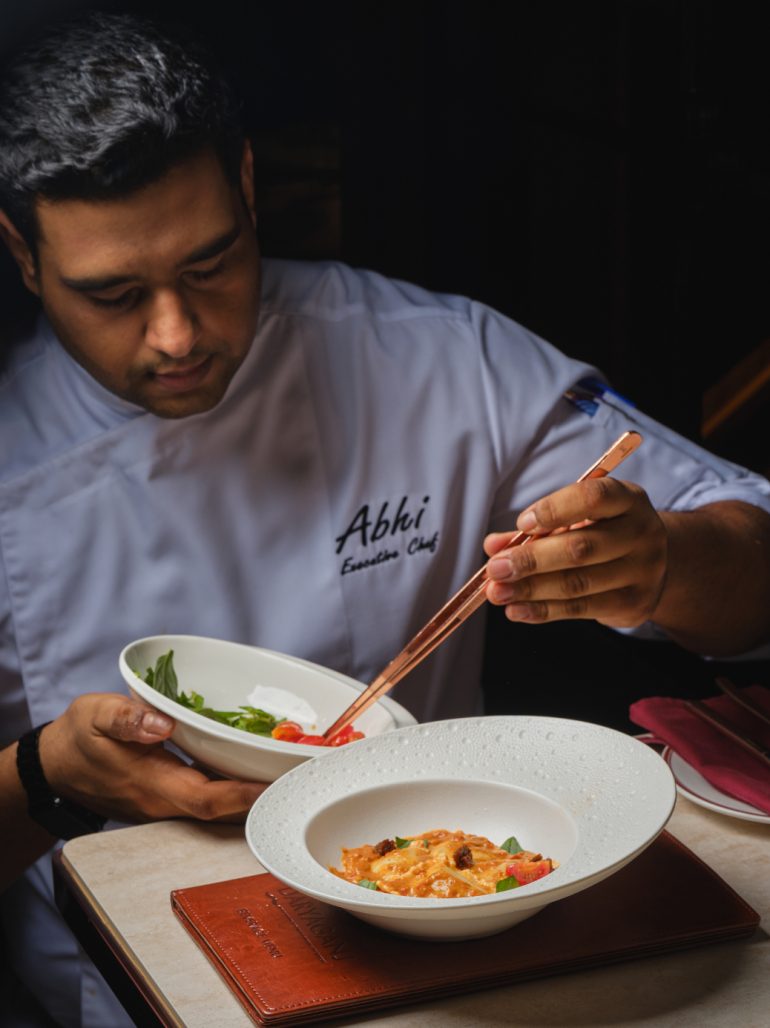 แขกสามารถเลือกอิ่มอร่อยกับเทสติงเมนูหลายคอร์สที่รังสรรค์อย่างพิถีพิถัน 2 รูปแบบ ได้แก่ เทสติงเมนูไม่มังสวิรัติ (ราคา 1,497++ บาท) และเทสติงเมนูมังสวิรัติ (ราคา 1,197++ บาท) ทั้งสองเมนูเริ่มต้นด้วยซุปถั่วเลนทิลปรุงรสด้วยเครื่องแกงเสิร์ฟพร้อมแครอทดอง ก่อนเข้าสู่จานเรียกน้ำย่อยที่จับคู่อย่างสร้างสรรค์และชวนประทับใจ ได้แก่ ชิกเกนทิกกาและจาฏส้มแทนเจอรีน หรือเคอร์กูรีบินดีและจาฏอะโวคาโด ตามด้วยจานเด่นสุดประณีตอย่างหอยเชลล์ย่างเสิร์ฟพร้อมซอสแซฟฟรอน หรือคอฟตาเห็ดป่าเสิร์ฟพร้อมทรัฟเฟิล