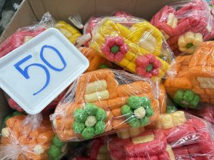 และสาย DIY ต้องถูกใจ—ปีนี้ร้านค้าพร้อมใจกันนำวัสดุธรรมชาติและวัสดุย่อยสลายง่ายมาจำหน่ายในราคาคุ้มค่า เหมาะทั้งสำหรับผู้ซื้อไปใช้เองและพ่อค้าแม่ค้าที่ต้องการต่อยอดทำกำไร ไอเท็มยอดฮิตได้แก่ หยวกกล้วย กาบกล้วย ใบตอง ใบไม้อบแห้ง โคนไอศกรีม ดอกไม้หลากสี ธูป เทียน รวมถึงกระทงสำเร็จรูปวัสดุรักษ์โลก เช่น กระทงอาหารปลา กระทงกะลามะพร้าว กระทงเปลือกข้าวโพด และกระทงโคนไอศกรีม ราคาเริ่มต้นเพียง 20 บาทเท่านั้น