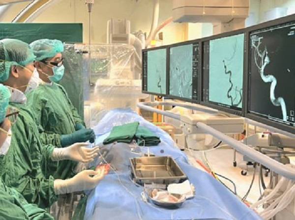 เป็นวิธีรักษาแบบไม่มีแผลและไม่ต้องเปิดกะโหลกศีรษะ “เราจะใส่สายสวนขนาดเพียง 1–2 มิลลิเมตร ผ่านหลอดเลือดแดงจากขาหนีบขึ้นไปถึงจุดที่หลอดเลือดผิดปกติในสมอง แล้วอุดจุดนั้นด้วยวัสดุเฉพาะ เพื่อหยุดการไหลเวียนของเลือดที่ผิดปกติ”