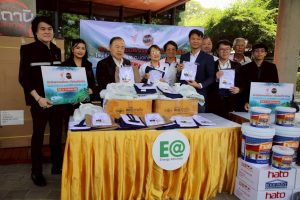 สำหรับการมอบสิ่งของในครั้งนี้ ประกอบไปด้วย สีทาอาคาร 7 ถัง ชุดนักเรียน 54 ชุด ชุดพละ 54 ชุดรองเท้านักเรียนและรองเท้ากีฬา จำนวน 108 คู่ จากกระทรวงทรัพยากรธรรมชาติและสิ่งแวดล้อม โต๊ะปิงปองพร้อมอุปกรณ์ จำนวน 2 ชุด จาก ดร.จำลอง ช่วยรอด คณะที่ปรึกษารัฐมนตรีช่วยว่าการกระทรวงพานิชย์ อุปกรณ์การเรียน จำนวน 100 ชุด และอุปกรณ์กีฬา ได้แก่ ลูกฟุตบอล ลูกวอลเลย์บอล และลูกบาสเกตบอล รวม 9 ชิ้น จากบริษัท ไทย สมายล์ บัส จำกัด ชุดนักเรียนจำนวน 54 ชุด จากบริษัท พลังงานบริสุทธิ์ จำกัด (มหาชน) ขนมเส้นบุกปรุงรสหม่าล่า 72,000 ซอง ผ้าห่ม 83 ผืน จากบริษัท ไบ่ ลี่ เอ็นเตอร์ไพรส์ จำกัด และผ้าห่ม จำนวน 40 ผืน เสื้อกันหนาว 40 ตัว ถุงเท้า 100 คู่ ชุดอุปกรณ์การเรียน 50 ชุด จากบริษัท ไทยสแตนเลย์การไฟฟ้า จำกัด (มหาชน)