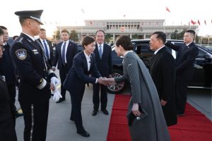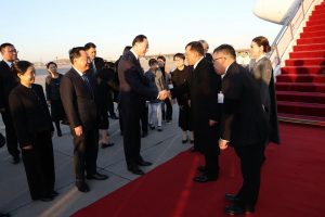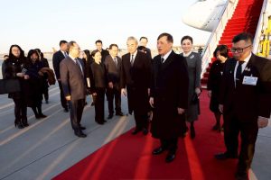 ในการนี้ พระราชทานพระบรมราชวโรกาสให้ นายฉัตรชัย วิริยเวชกุล เอกอัครราชทูต ณ กรุงปักกิ่ง เฝ้าทูลละอองธุลีพระบาท และกราบบังคมทูลเบิก นายหง เหล่ย (Mr. Hong Lei) ผู้ช่วยรัฐมนตรีว่าการกระทรวงการต่างประเทศและอธิบดีกรมพิธีการทูต สาธารณรัฐประชาชนจีน เฝ้าทูลละอองธุลีพระบาท กราบบังคมทูลเชิญเสด็จลงจากเครื่องบินพระที่นั่ง โดยมี นายหวัง อี้ (Mr. Wang Yi) สมาชิกกรมการเมือง ผู้อำนวยการสำนักงานคณะกรรมการกลางด้านกิจการต่างประเทศของพรรคคอมมิวนิสต์จีน และรัฐมนตรีว่าการกระทรวงการต่างประเทศ สาธารณรัฐประชาชนจีน พร้อมด้วยข้าราชการระดับสูง สาธารณรัฐประชาชนจีน เฝ้าทูลละอองธุลีพระบาทรับเสด็จ