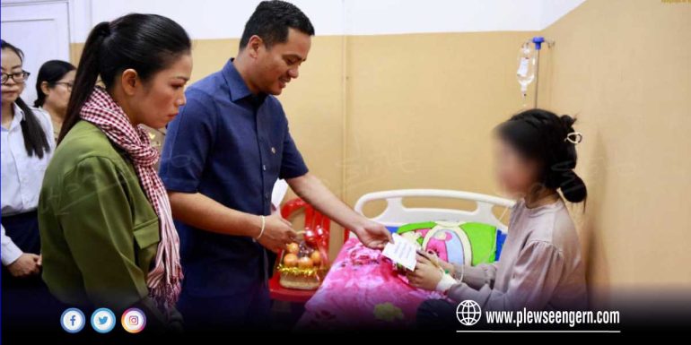“…รองนายกรัฐมนตรีและรัฐมนตรีว่าการกระทรวงมหาดไทย ซาร์ โสคา พร้อมภริยา เข้าเยี่ยมแรงงานต่างด้าวชาวกัมพูชาที่ถูกทหารไทยในชุดเครื่องแบบสีดำ ทำร้ายร่างกาย ขณะเดินทางกลับจากประเทศไทย เมื่อเช้านี้